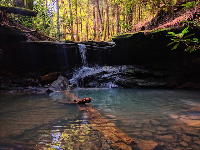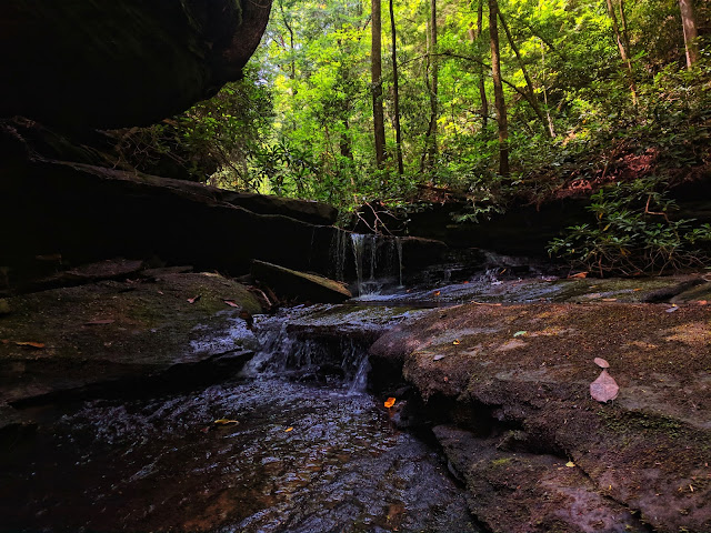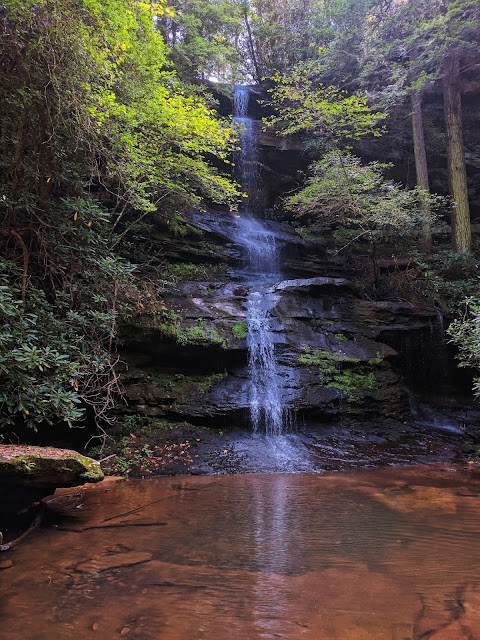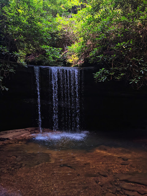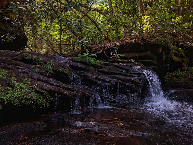 A much larger waterfall and a great place for lunch. I saw a biker here, he was in the process of lugging his bike up the trail and was planning on riding some of the forest roads up on the ridges.