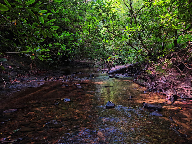 I took the creek back to the car instead of retracing my path on the trail. I had heard good things about this creek hike and was really looking forward to it. Most of the creek was ankle to calf deep, but there were parts where it was up to my crotch. I was glad I was doing this hike in August and not in March.