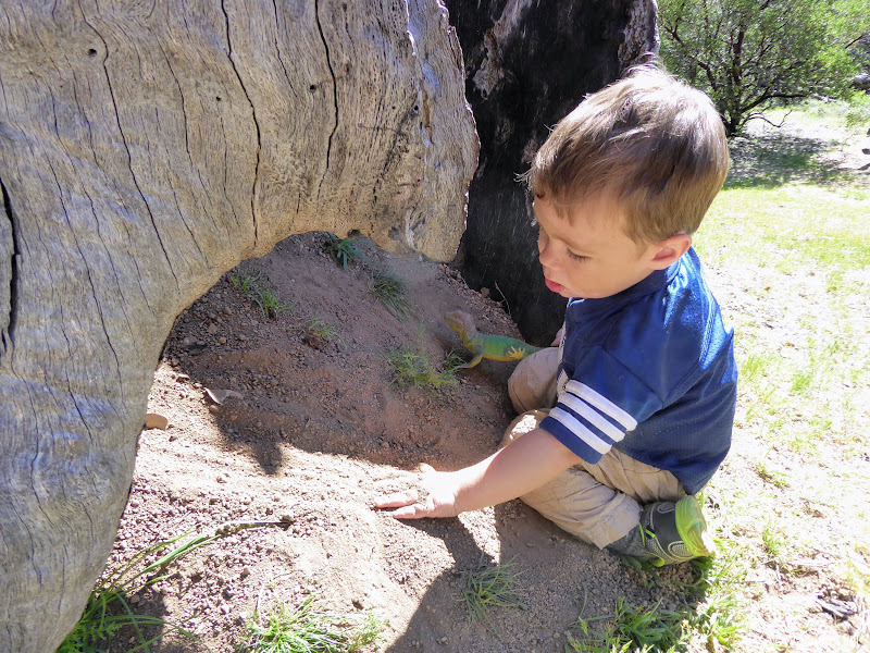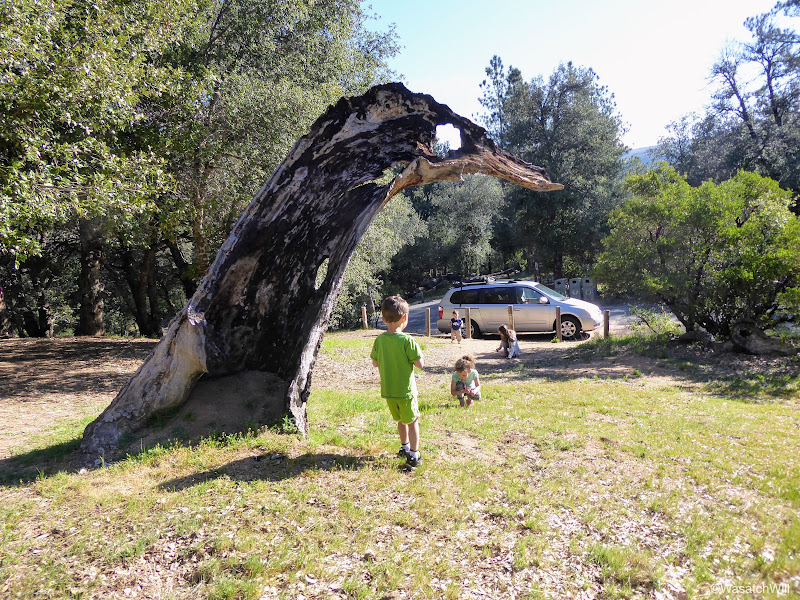 Within our campsite was an odd looking formation. It was actually an old rotted out tree trunk. The kids and I had fun thinking up all the different animals it looked like. Bird, dinosaur, and more specifically, a raptor, were all mentioned. The kids also got to play around a bit while I worked on getting camp cleaned up.