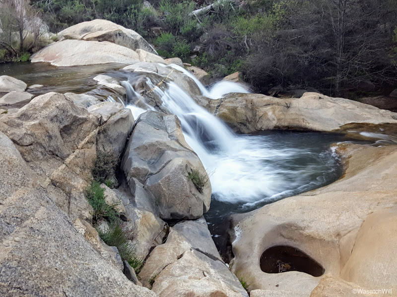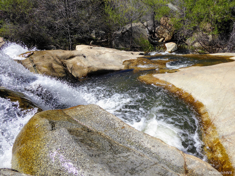 As usual, I woke up before everyone else, eager to get out and explore our camp's surroundings. I also wanted to scout out what would be doable and worth returning to with the rest of the family later in the morning. I walked down to the other end of the campground and found the trail down to Green Valley Falls along the Sweetwater River.