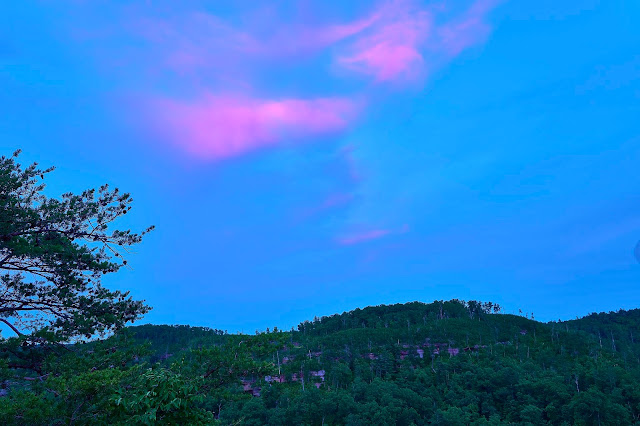 We had an easy hike to "The Veranda" where I was a little disappointed to find a solo camper already set up. I figured I'd have the place to myself in the middle of the week. He had a hammock so was back in the trees while we setup the tent near the end and a nice view. I talked to him a little bit before dinner and probably would have chatted more, but this was supposed to be "boys time" with my son.