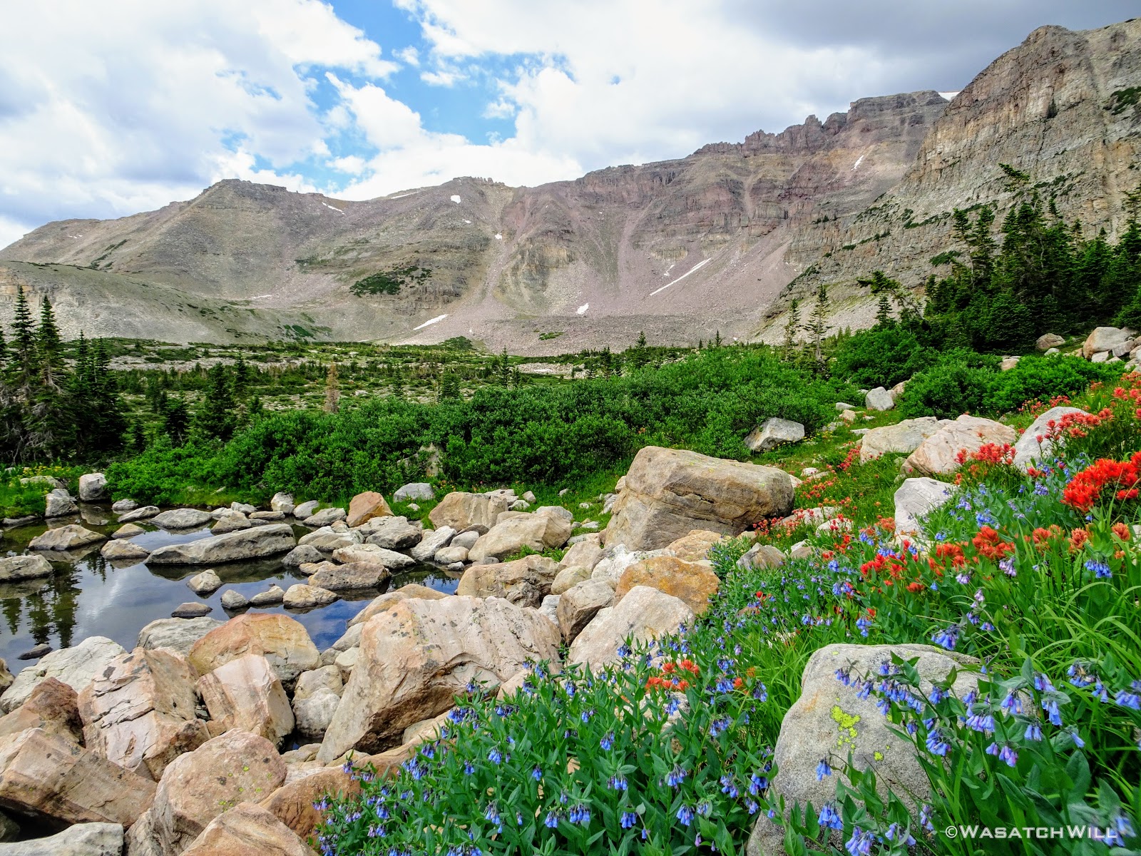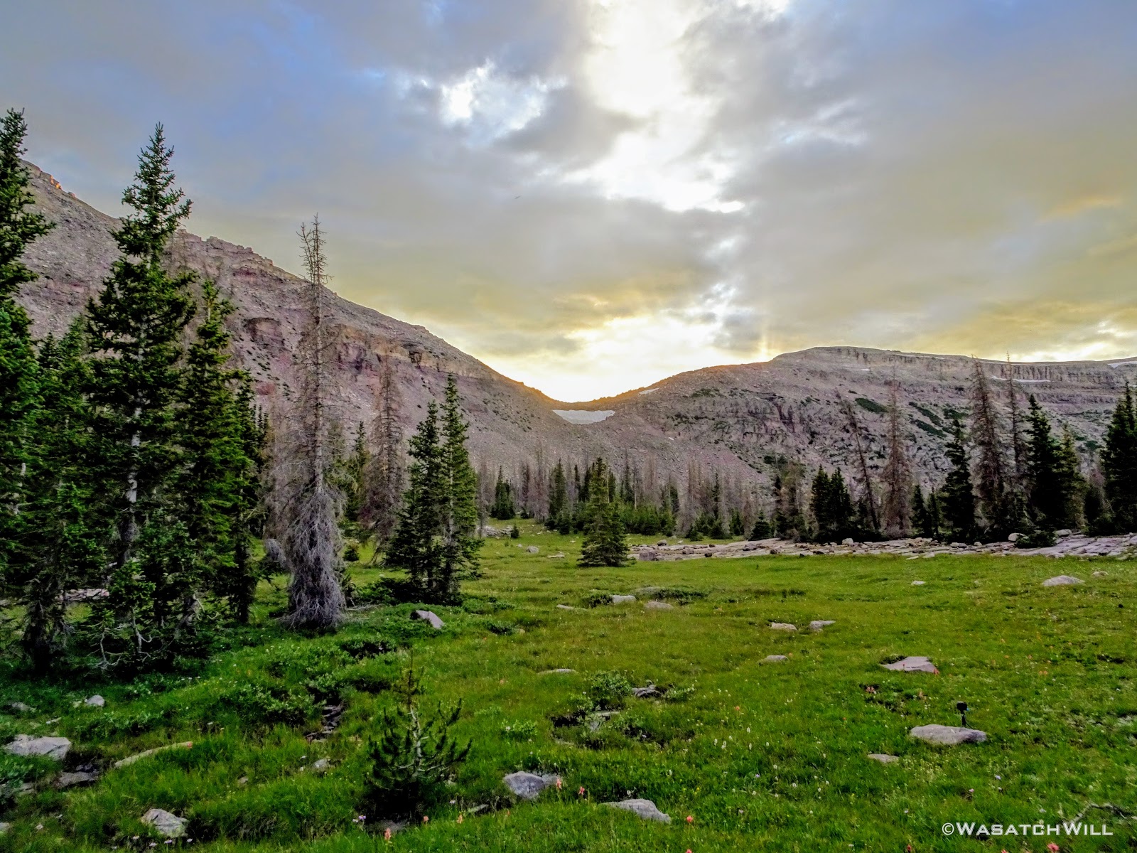 Originally we had started planning a route that would take us on a lollipop loop to hit Kings Peak and spend some time around Red Castle. After some thinking on both sides, it was mutually agreed that the elevation changes might be too strenuous for the Ohio crew coming right off the plane and at least one of them had dealt with a recent injury that he wasn't sure about being fully recovered from. So, a more moderate route was planned that would enable lesser travel time and quicker access (i.e. more trail time), less strenuous elevation gains and losses, and yet still allow us to tour some beautiful basins and get somewhat deep into the Uintas backcountry. Ultimately, a more mellow 36ish mile route mostly planned out by Devin was agreed upon. It would take us on somewhat of a figure 8 course, nipping off a corner of Granddaddy Basin before cutting back up into Four Lakes Basin, then up and over Rocky Sea Pass to spend a couple nights in Rock Creek Basin, before returning back up and over and down the Highline Trail before rounding out the trip.