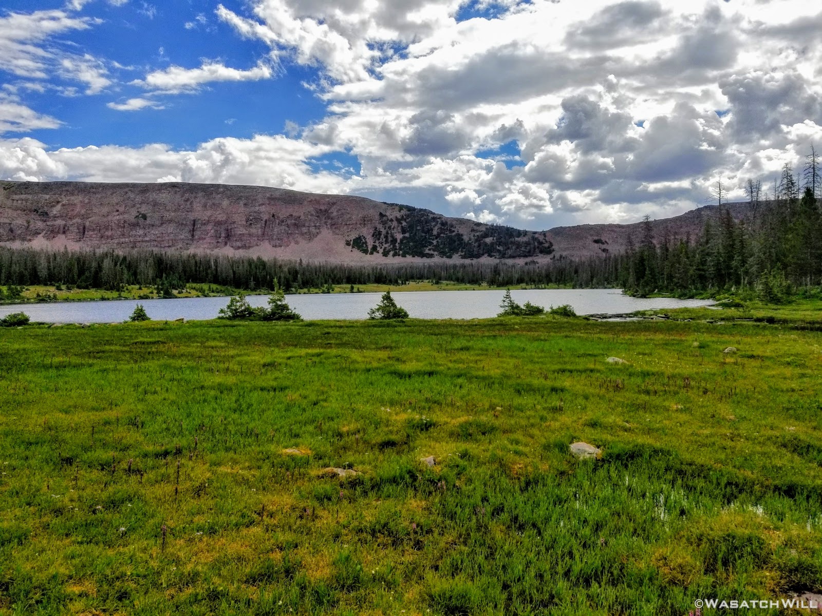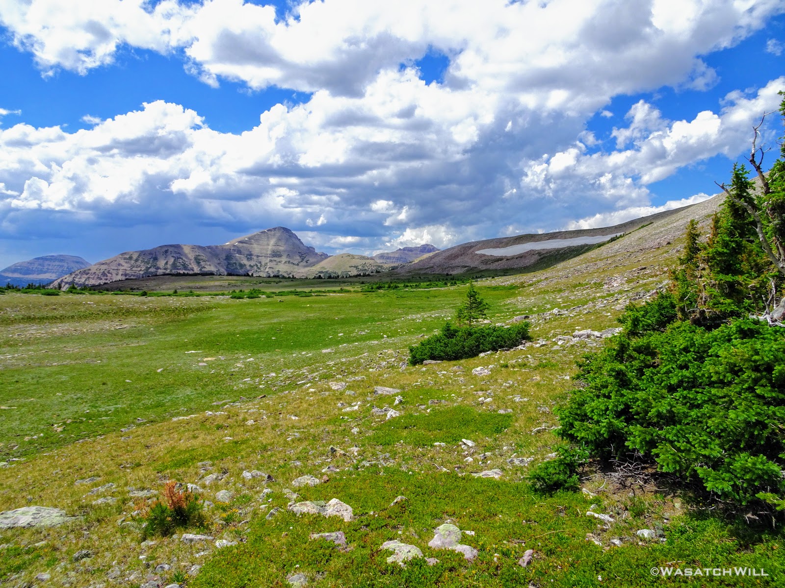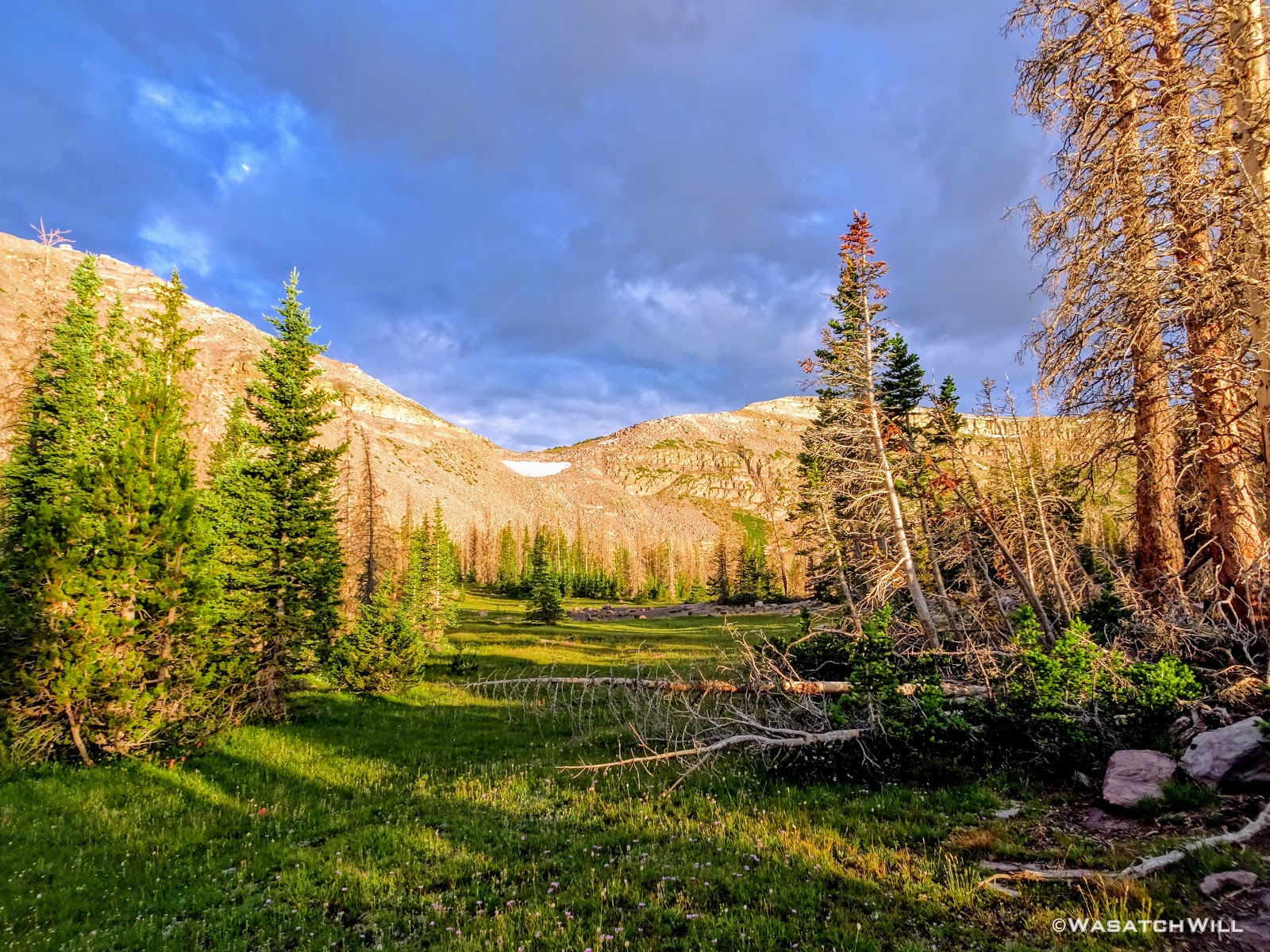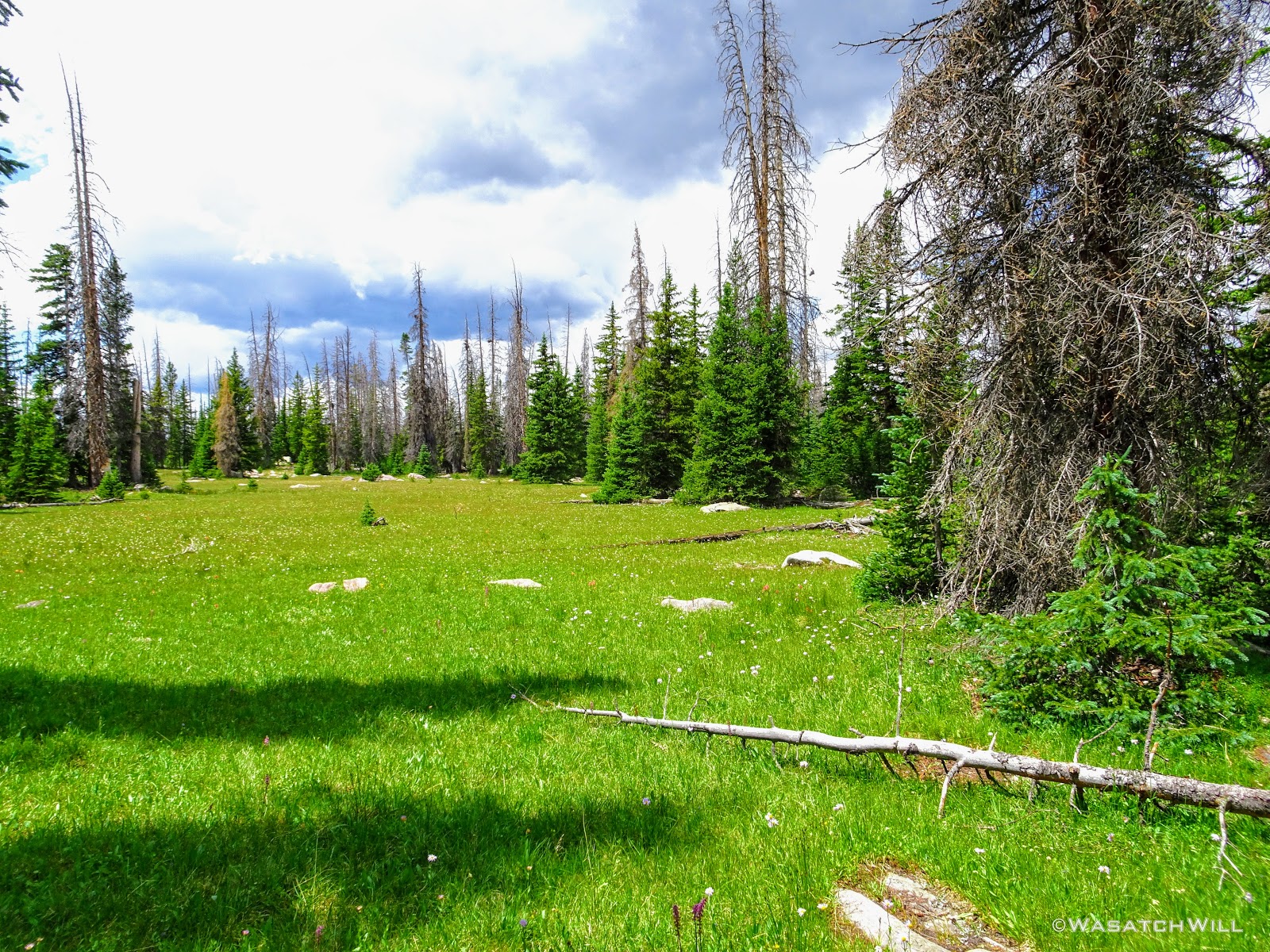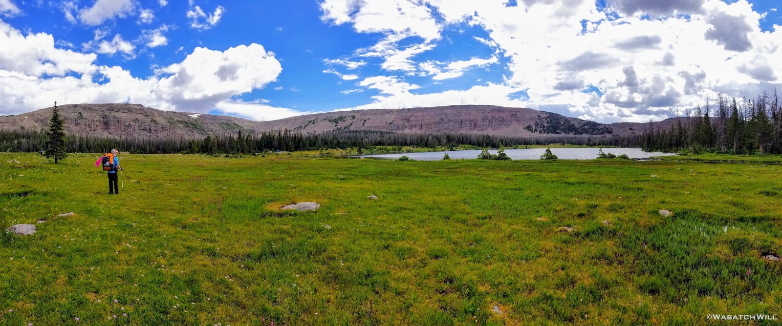 The typical afternoon monsoon storms were threatening not far to the east and we'd hear the occasional crack of thunder but never encountered more than a brief light shower that quickly passed us over. As the trail approached the East Fork of the Duchesne, it presented us with more variation in the terrain. From here on out, the scenery would just mount up and become more and more beautiful and breathtaking as it carried us through to the final day.