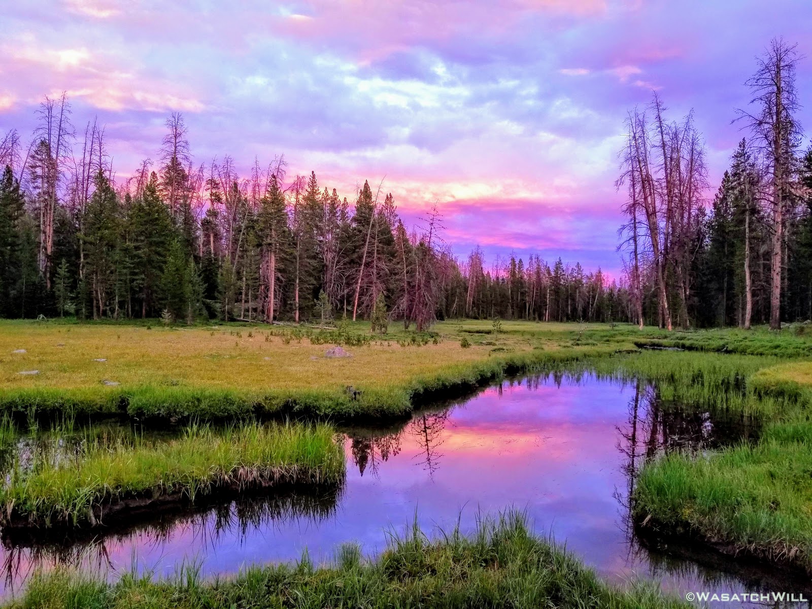 We finished out our day's mileage by settling into a camp a good distance off trail along the creek that drains out Naturalist Basin. Therefore, might as well call it 'Naturalist Creek'. The rain had also given way to some sunshine in our final mile.