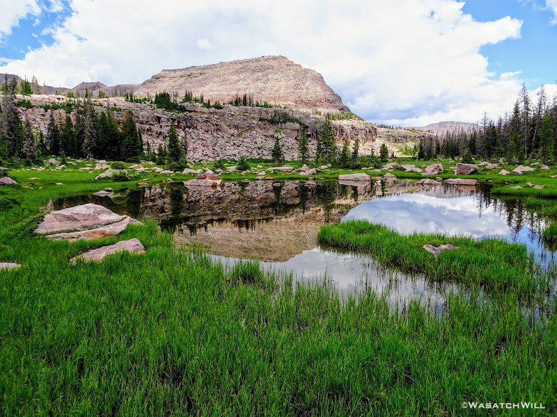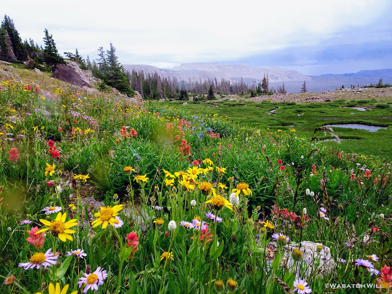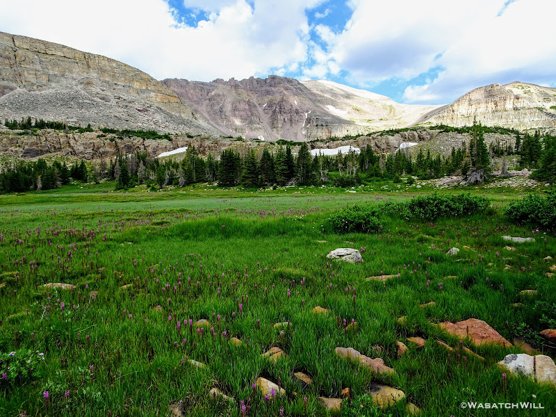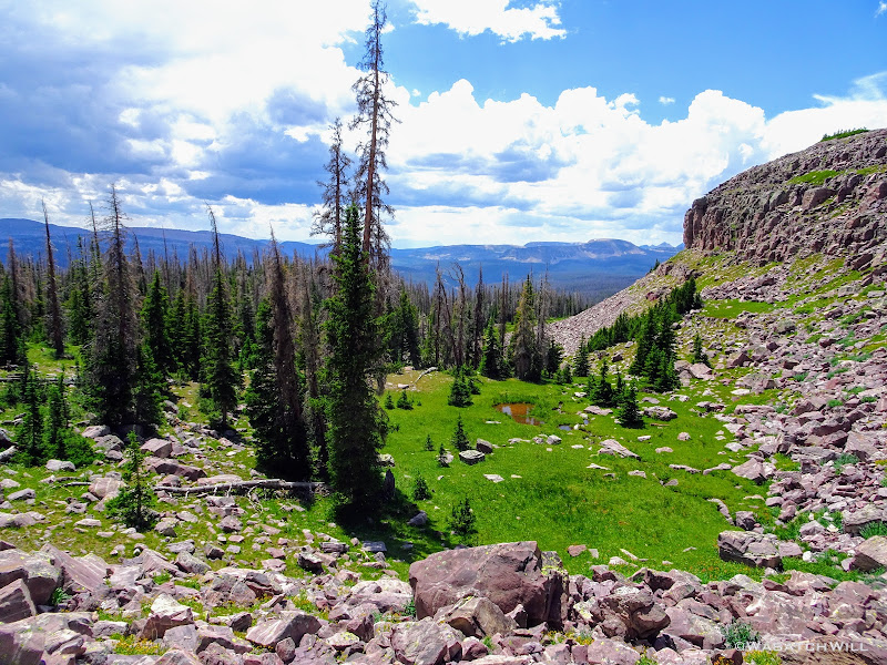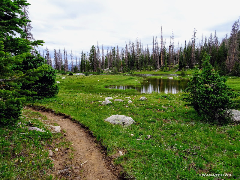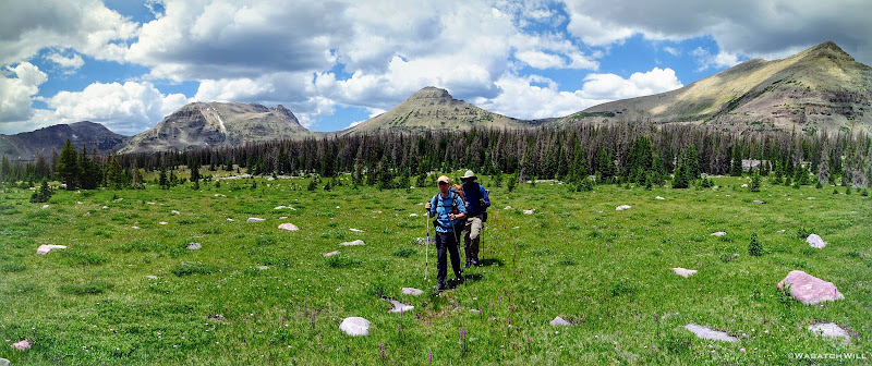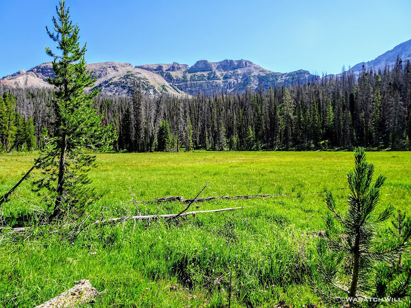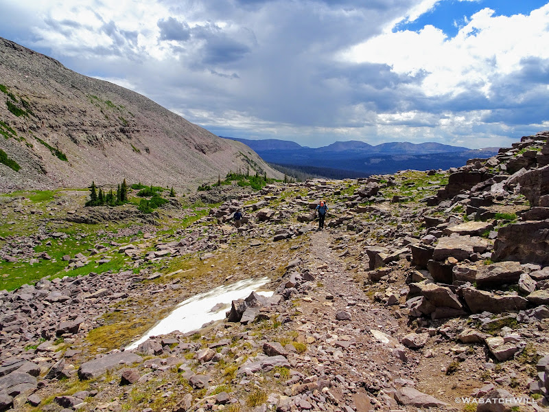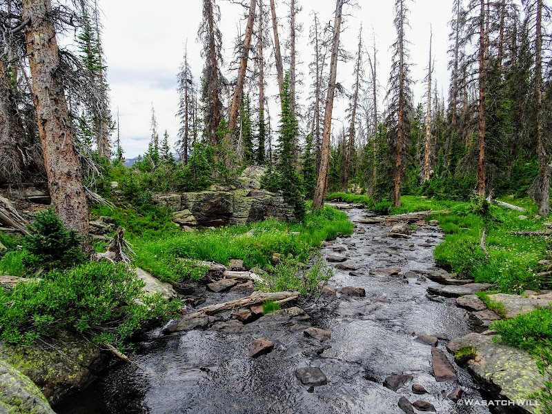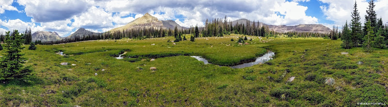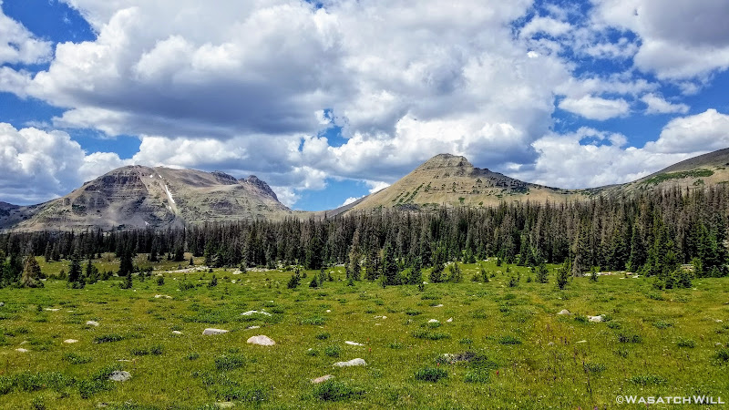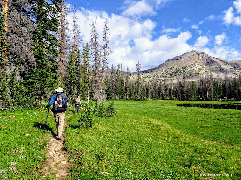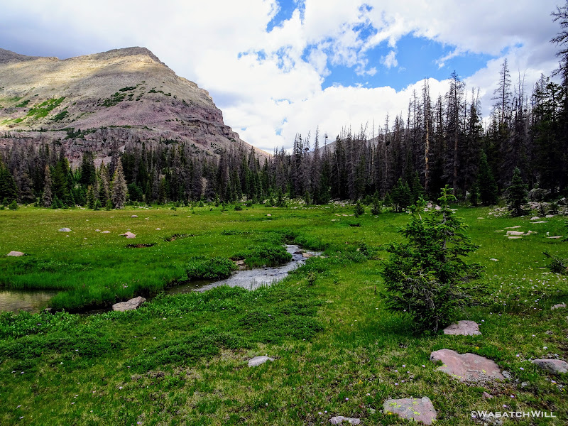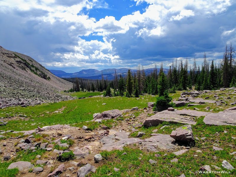 The typical afternoon monsoon storms were threatening not far to the east and we'd hear the occasional crack of thunder but never encountered more than a brief light shower that quickly passed us over. As the trail approached the East Fork of the Duchesne, it presented us with more variation in the terrain. From here on out, the scenery would just mount up and become more and more beautiful and breathtaking as it carried us through to the final day.