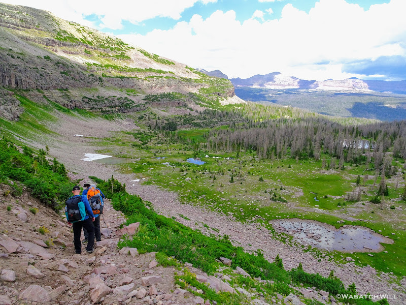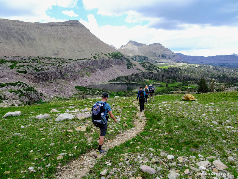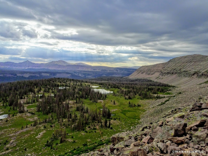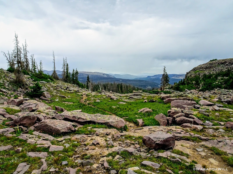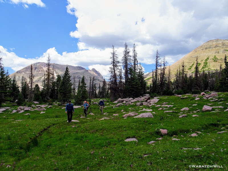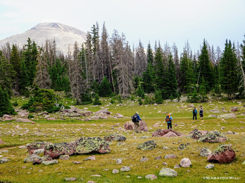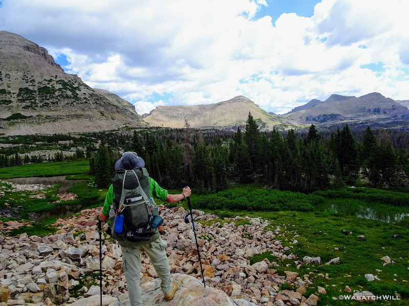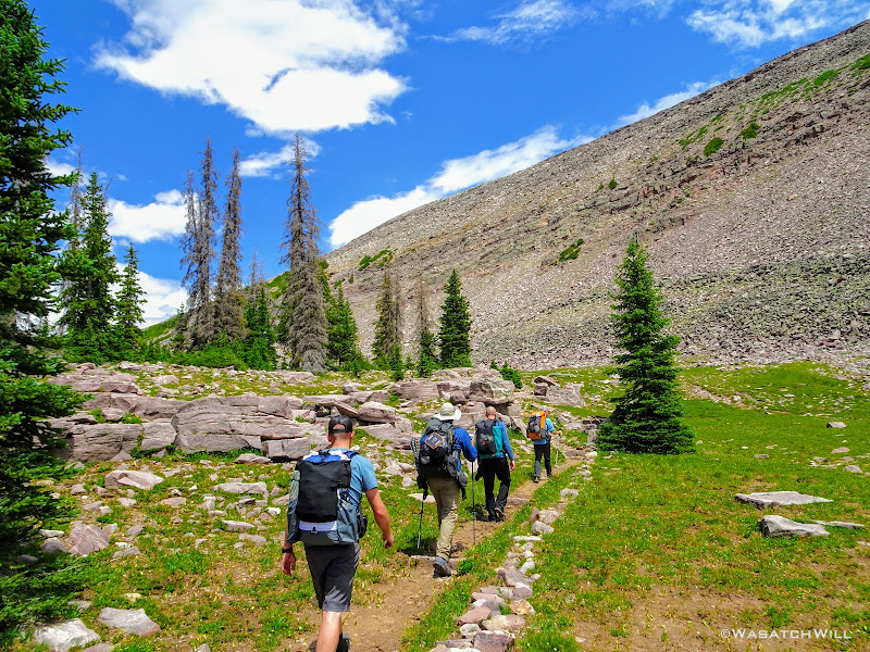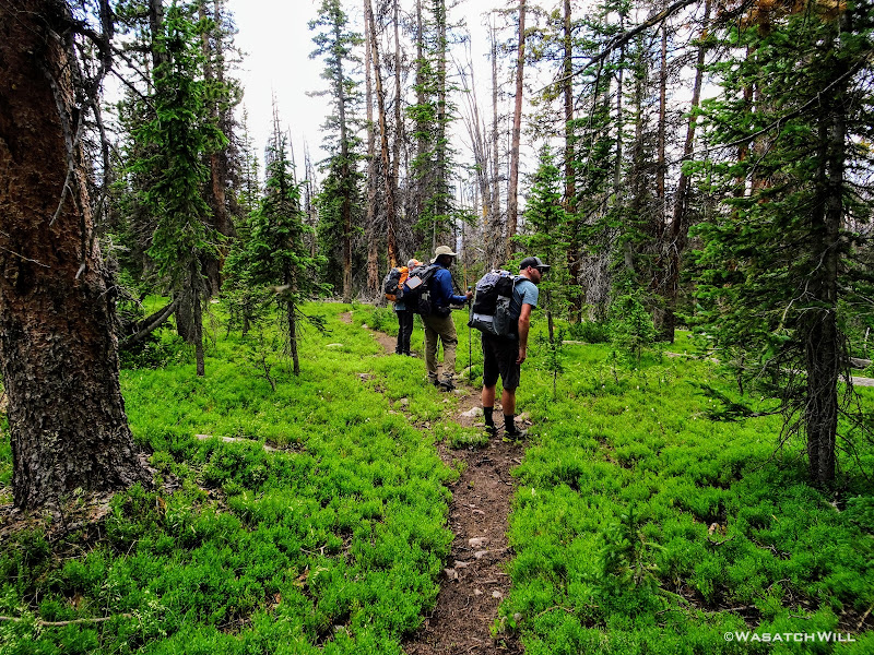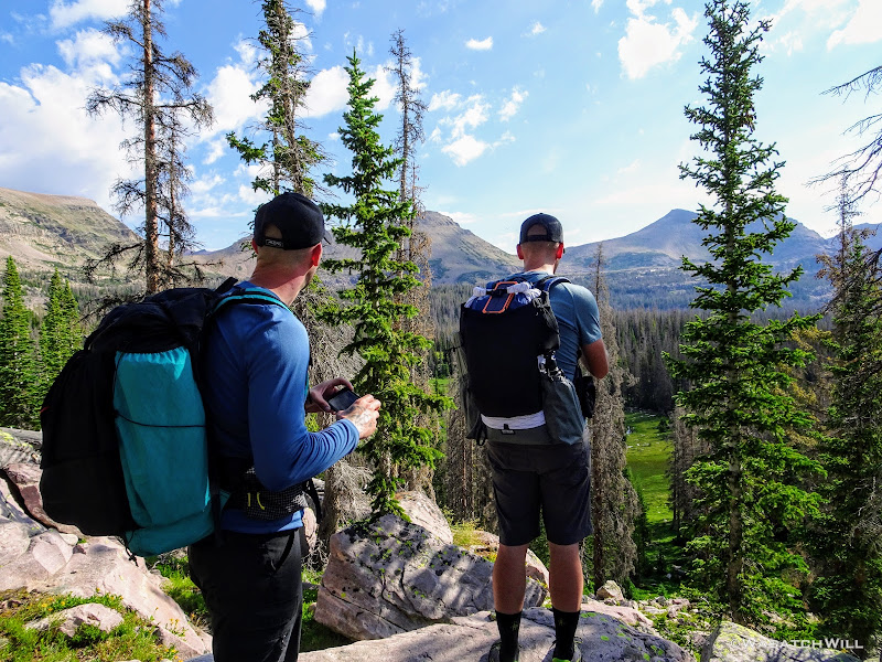Originally we had started planning a route that would take us on a lollipop loop to hit Kings Peak and spend some time around Red Castle. After some thinking on both sides, it was mutually agreed that the elevation changes might be too strenuous for the Ohio crew coming right off the plane and at least one of them had dealt with a recent injury that he wasn't sure about being fully recovered from. So, a more moderate route was planned that would enable lesser travel time and quicker access (i.e. more trail time), less strenuous elevation gains and losses, and yet still allow us to tour some beautiful basins and get somewhat deep into the Uintas backcountry. Ultimately, a more mellow 36ish mile route mostly planned out by Devin was agreed upon. It would take us on somewhat of a figure 8 course, nipping off a corner of Granddaddy Basin before cutting back up into Four Lakes Basin, then up and over Rocky Sea Pass to spend a couple nights in Rock Creek Basin, before returning back up and over and down the Highline Trail before rounding out the trip.