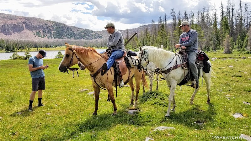 We opted to take a good rest there. While snacking up we were confronted by a couple of horse packers out doing some fishing as they were concluding a multi-day trip of their own. One of them recognized Devin from his Youtube channel (albeit confusing his channel with one of Devin's other good friends who also runs a channel). His name was Clay and without seeing me yet, mentioned my channel. "That's me," I bragged from his other side, raising up my hand. He then looked my way and we exchanged pleasantries as well. And then it was Tim's turn to be recognized. It turns out Clay had recently started documenting his trips on video inspired by following our channels and others. He was now publishing his trips on his own channel, Clay On The Trail. What a small world something like YouTube and other digital forums and communities can make for outdoor enthusiasts.