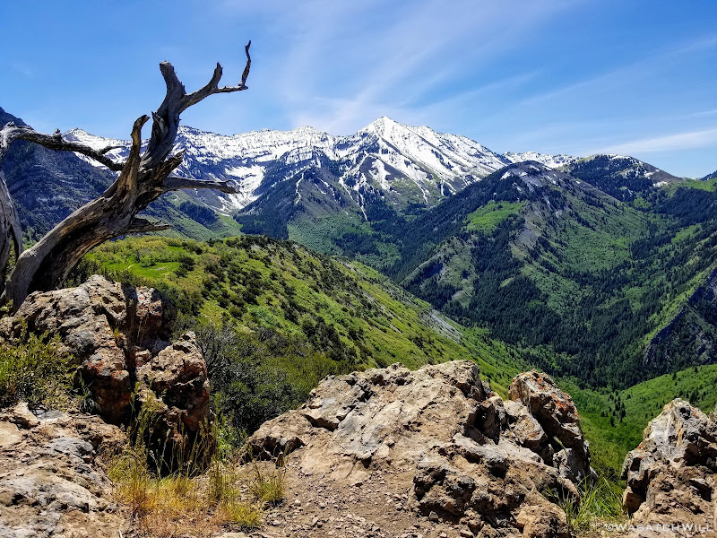 On the way up, we had been overtaken by a small group of Army reserves out on a fitness run, but otherwise, had the whole trail and peak to ourselves on this pleasant Tuesday morning. The views it presented of Provo Peak to the south and elsewhere around us were as beautiful as ever.