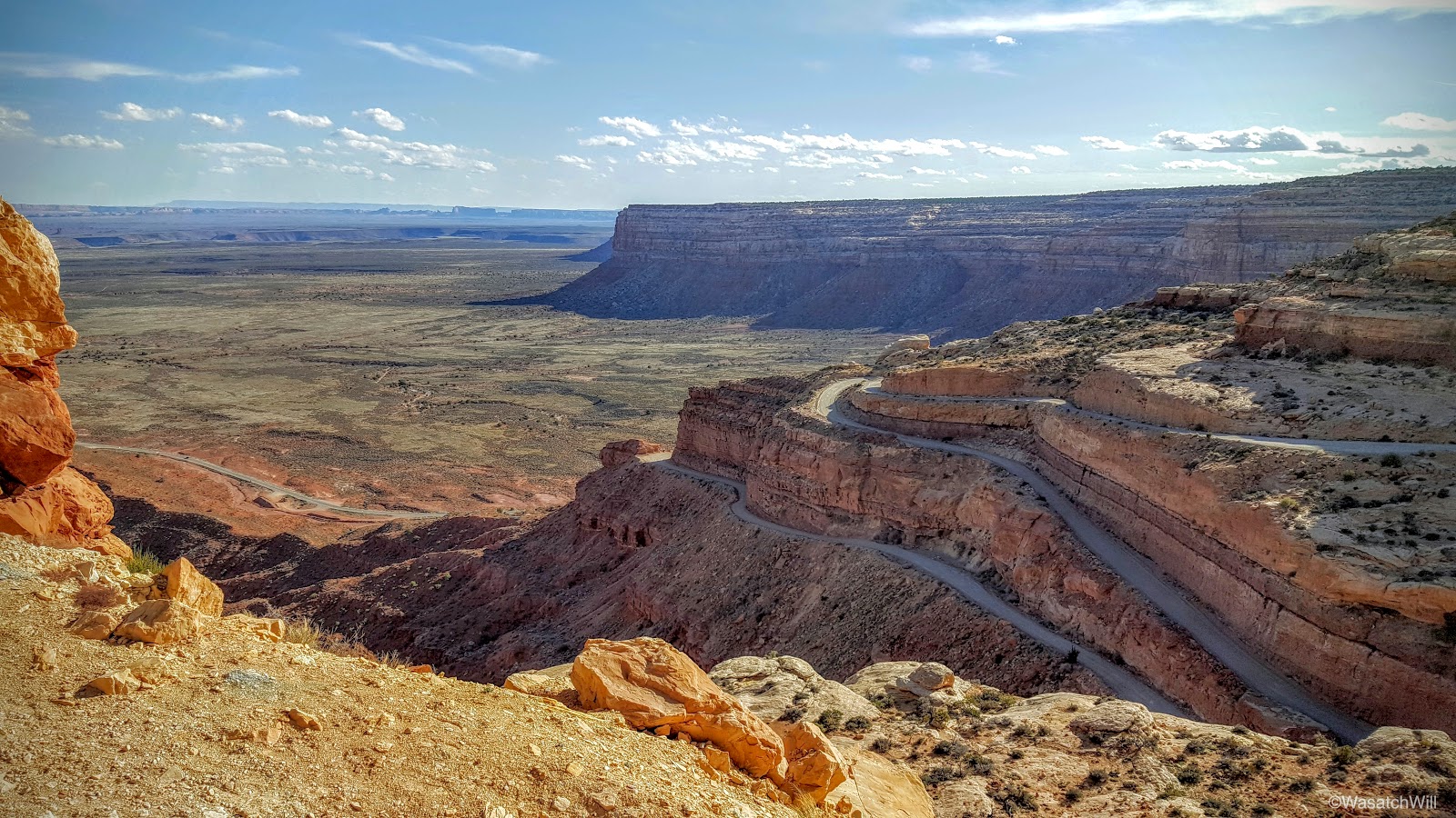 Oh no! That better not be what I think it is. I stop and listen some more. "Ssssssssssssss." Oh no. That can't be good! It could only be one thing. I was well on my way to having a flat tire and dummy me, I didn't take a jack with me. I now had a decision: continue out to Muley Point as quick as the tire would let me in hopes of finding or waiting for someone else to arrive out there with a jack I could borrow or flip a U-turn and head back out for the junction with the highway atop Moki Dugway. I chose the latter option.