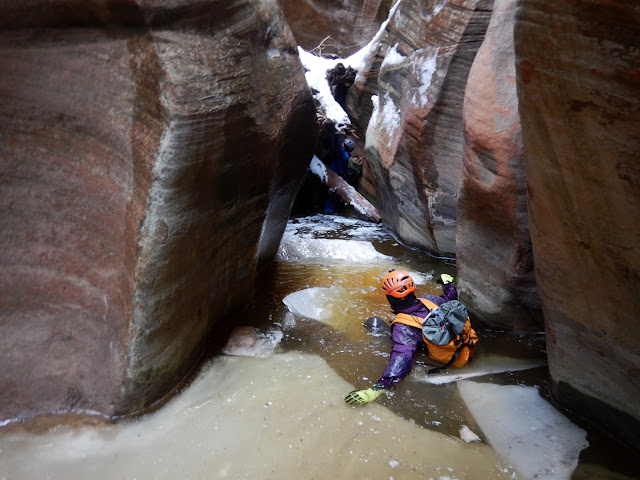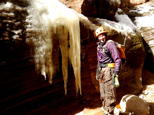 Woa there! Ice axes in a slot canyon? Now I've seen it all! Those pics of sitting in the ice are making me shiver just looking at them.