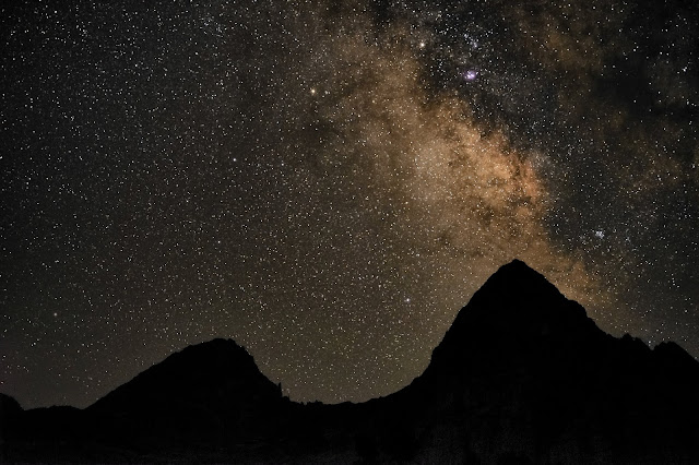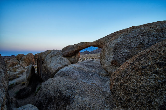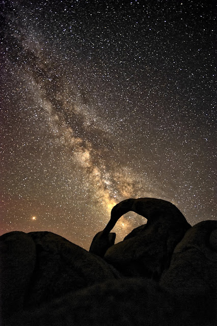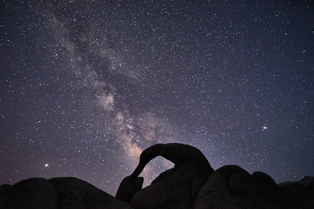 I was all by myself and was planning on a quiet couple of hours and then a mom and dad and their 4 kids came around the corner and started poking around the arch. I had visions of my carefully planned Milky Way photo disappearing, but they saw me and the tripod and got really apologetic. I told them I was waiting for stars and they weren't ruining any photos at the moment. I took a group photo for them and the dad said they were heading back to the parking area to set up a telescope and I was welcome to stop by on my way out.