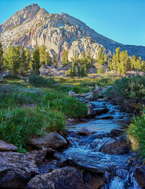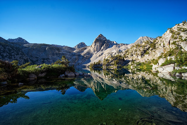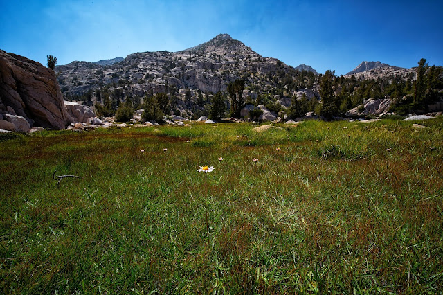 I decided that I would head to the basin that was my goal yesterday. Where I ended up is not a secret, especially if you read this report, but I don't want to put a name to the photos, since this was the quietest part of the trip. It felt like I had the whole area to myself and I see no reason to potentially add more people to the area. Everyone can stay on the JMT and enjoy the beauty of Rae Lakes.