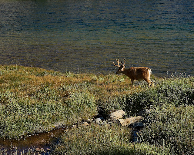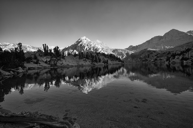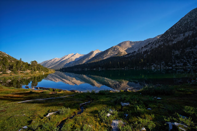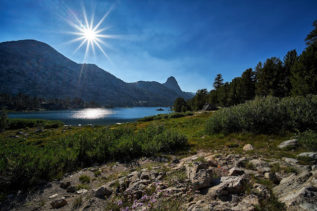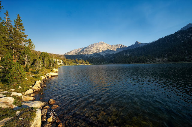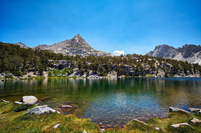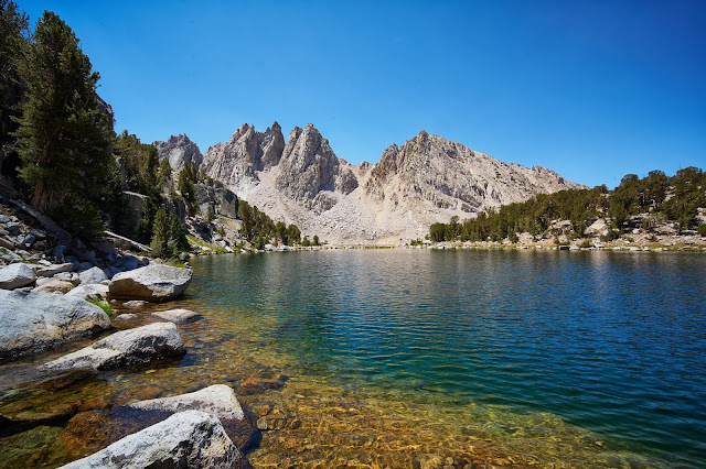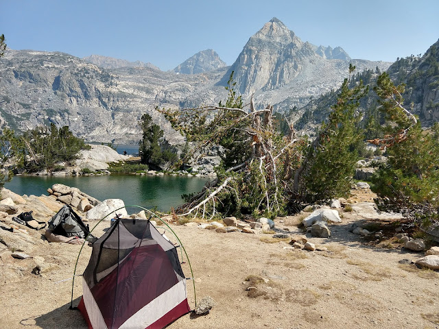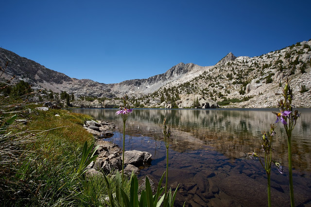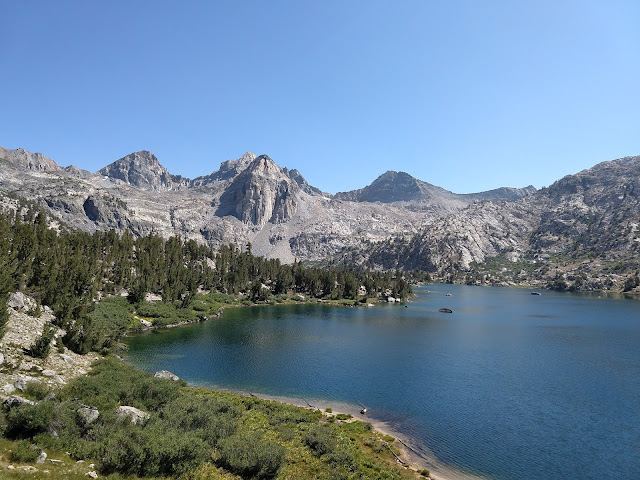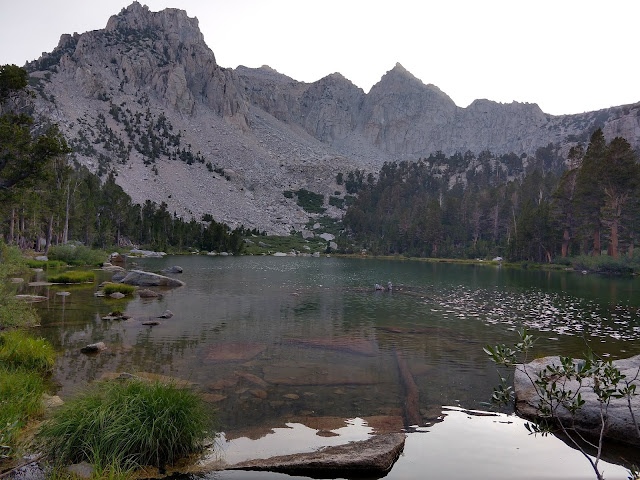 I headed back to Rae Lake and a different campsite that I had found the first night. I was hopeful that it would be less quiet since it wasn't the weekend. I set up camp and then headed north on the JMT to see what I could see. I spent a lot of time poking around the shore of the lake and talked to a couple people.