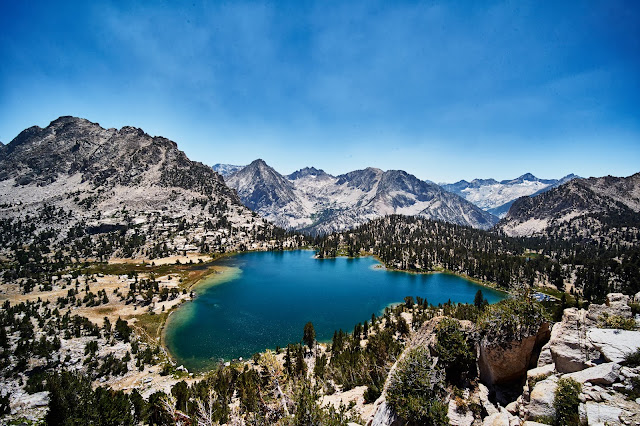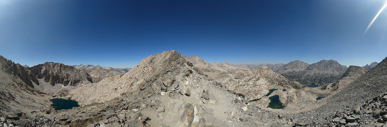 Looking down on the Rae Lakes basin (the Painted Lady is just off to the right)