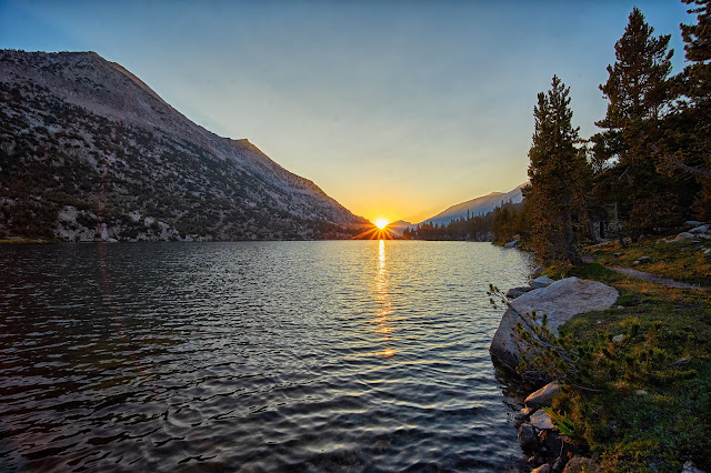 After making my way around the shore of the Kearsarge Lakes, I gathered my stuff and continued on to Charlotte Lake. I found a campsite near the lake shore and set up camp. It appears that this is a very popular area, there was a noisy group of young kids swimming in the lake and making lots of noise, they were having fun, but they were a little annoying. I then went exploring further down the lake before heading back to camp for dinner and a sunset. I swatted at some mosquitos as it got dark, but they were never bad enough to need bug stuff.