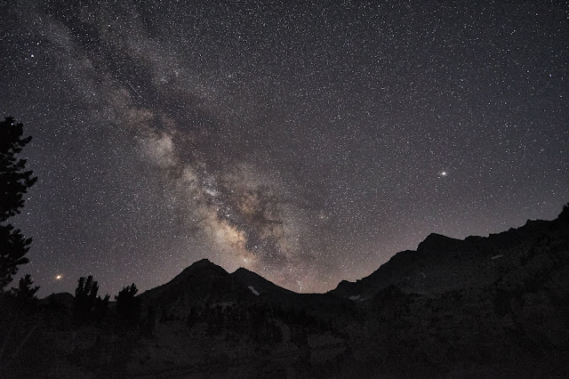 I delibrately set up camp on the north shore of Charlotte Lake so I could see the Milky Way (Jupiter is on the left).