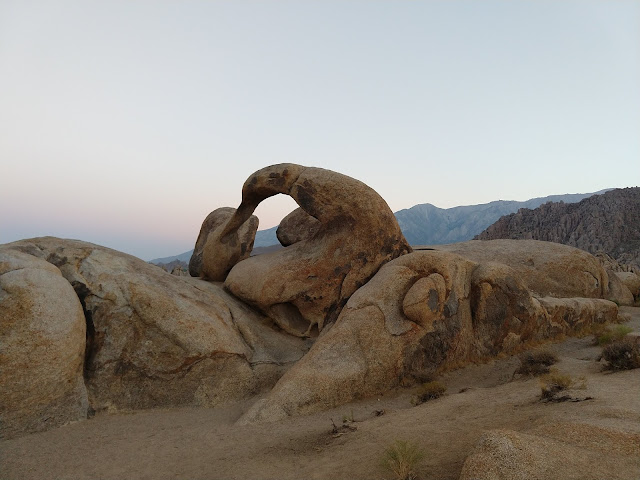 Another benefit of heading to Lone Pine is that the town is right next to the Alabama Hills. This area is pretty famous for all of the arches. It is also at a pretty low elevation (as is Lone Pine) so it was about 100 degrees in the shade. I found beer and pizza and then went back to the Sierra Permit place to pick some brains about future trips.