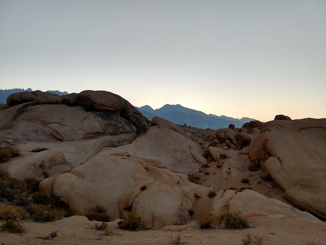 So, Wed am wake up really early and drive about an hour to Cincinnati, then direct flight to Vegas, then car rental, then find Home Depot for denatured alcohol for my stove, Walmart for a cheap beer cooler and a beer/ice stop, then about 4 hours of driving to get to the permit place and then another 30 minutes to get to the campground. I knew that the campground was popular, but I was hopeful that getting there early enough in the middle of the week would let me find a spot. When I got there about 5pm, there were still a couple of sites. I got set up and while I was enjoying a beverage a couple women came by looking for a site. I told them that I did not mind if they squeezed into my site. It turned out they were hiking the JMT southbound and were planning on hitching into Independence for their last resupply. I gave them both a beer after they got there tents set up and we chatted a bit, they were both teachers in Vancouver. As I was getting ready for bed, I realized that I had not brought my toothbrush. I told the women that I would be heading into town in the morning to find one and I'd be happy to give them a ride to the post office.