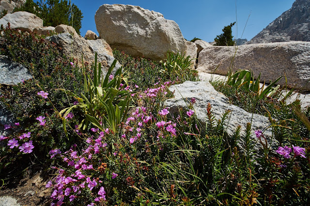 The climb to Glenn Pass on the JMT was steep and hot, but as I got higher, the wildflowers began to be more plentiful. I pulled out my camera a lot which meant that I kept getting passed by people and then I would catch up to them again as I got moving.
