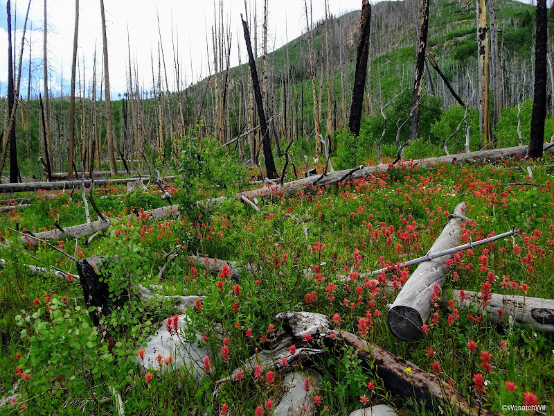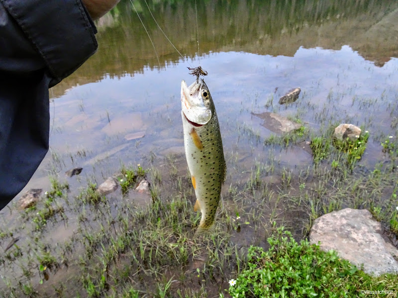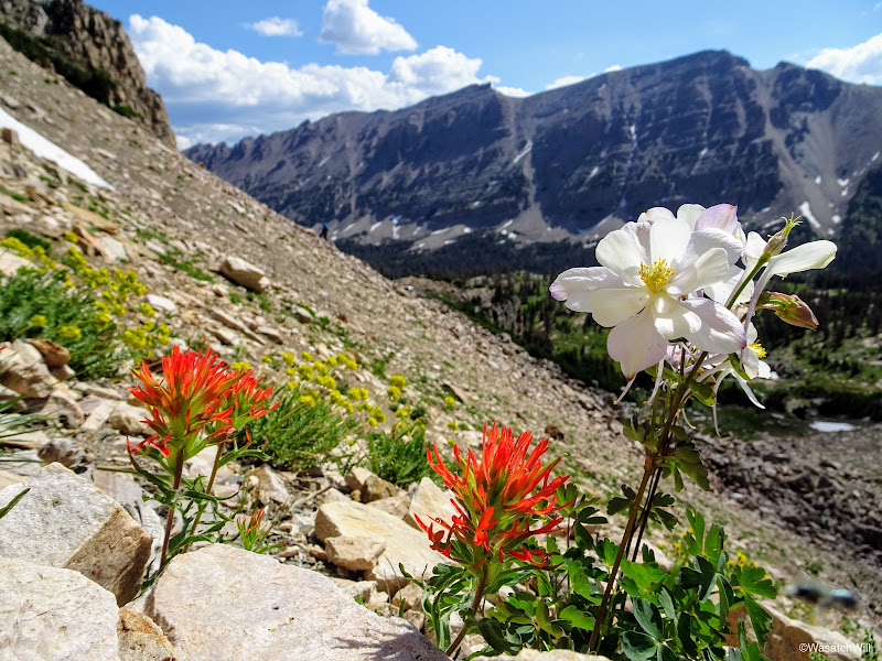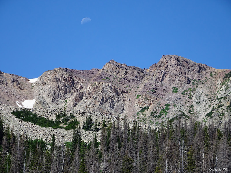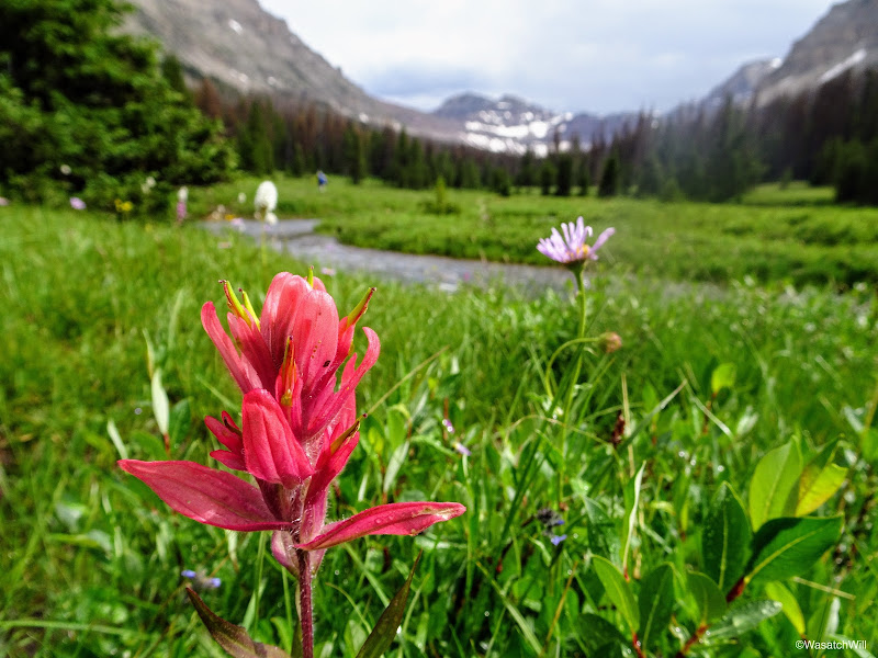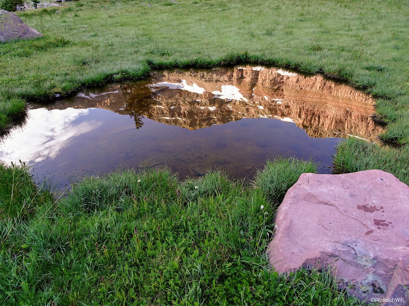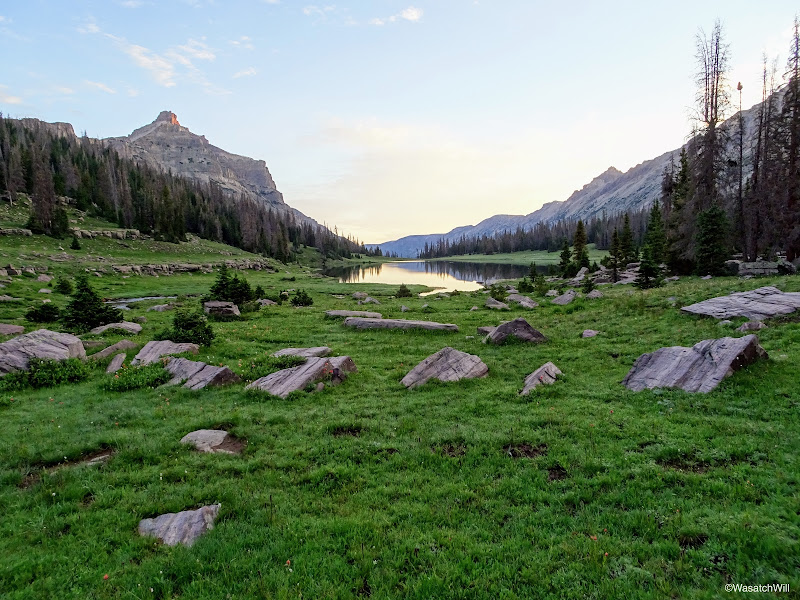 Close to camp, we ran into a pair of wilderness rangers who were up for the weekend taking inventory on the number of fire rings they could find throughout the basin with a focus around the lake. Possibly to explore the possibility of putting Allsop within the same fire restrictions that so many other High Uinta lakes are now under, which is that there are to be no campfires within a quarter mile of their shores. From our own explorations, there weren't many at all compared to what I've encountered throughout more popular basins in the Uintas.