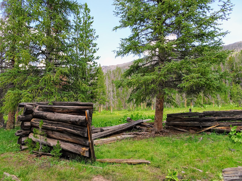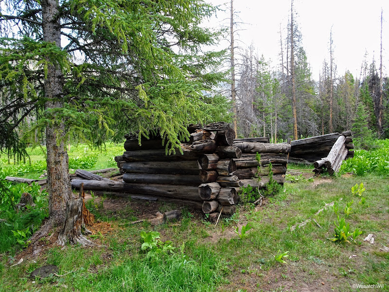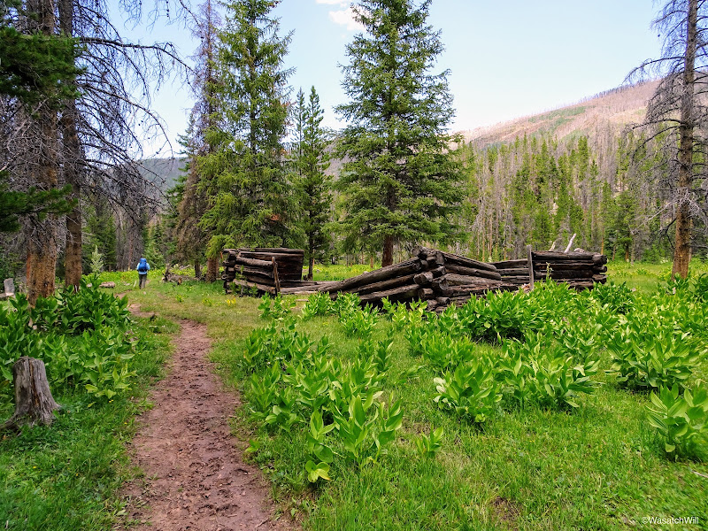 A couple miles up the trail, we passed by what is believed to be an old tie-hacker cabin. Tie-hackers were people who harvested timber to be used for railroad ties in the construction of the transcontinental railroad.