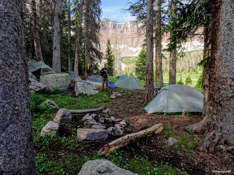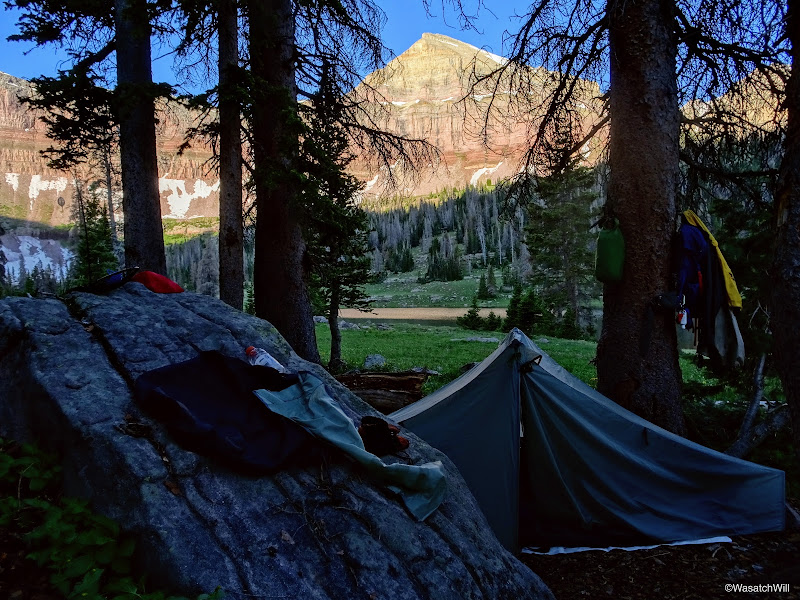 For a meetup with friends, mostly inspired by Adam from last year's Highline Trail trip, we opted for a more casual trip up into the Uintas this year. We chose Allsop Lake, a place neither of us had been yet. Given how the trail conditions turned out, it would have been just as fitting had it been named "All Slop" Lake because the trail was mostly mud or marsh the whole way up. I reached out and invited a few others along to join us as well. As it turned out, we ended up with a group of five, including a buddy of Adam's who would be backpacking for the first time.