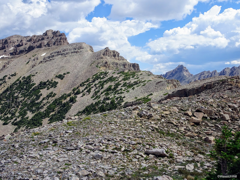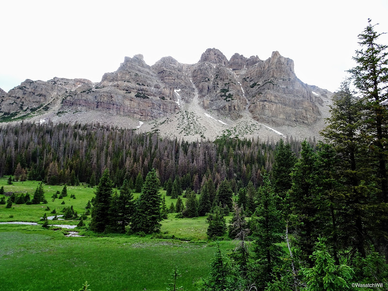 Deadhorse Peak (distant left) and the Cathedral (right) from along Left Hand East Fork Bear River