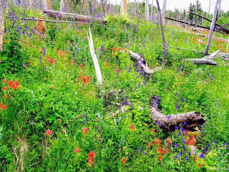 Almost right off the bat, the trail immersed us into thick stands of an assortment of wildflowers of almost all colors. It was like stepping through a rainbow.