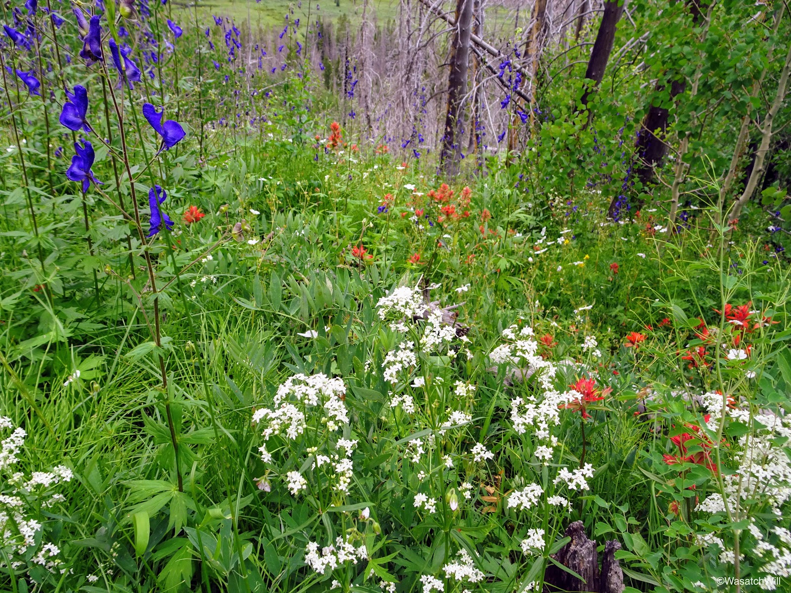 Almost right off the bat, the trail immersed us into thick stands of an assortment of wildflowers of almost all colors. It was like stepping through a rainbow.