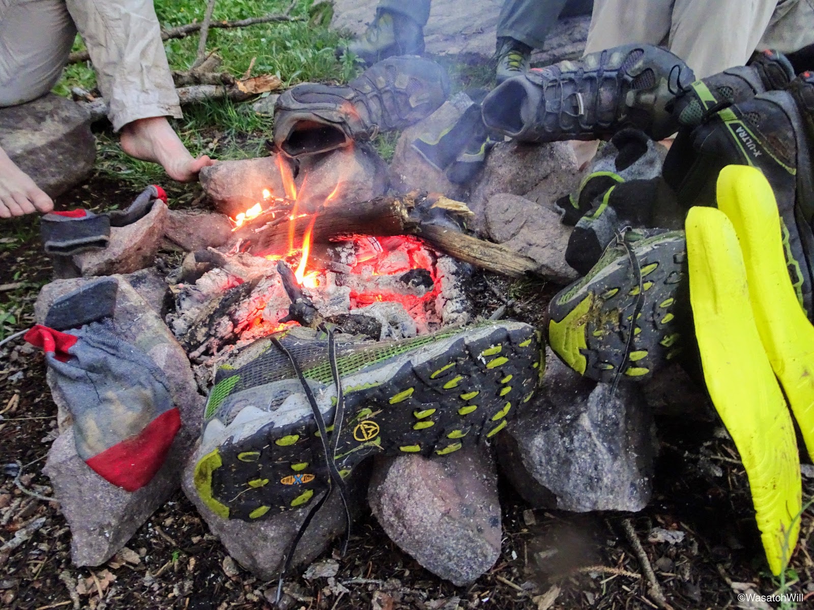 Satisfied with the success I had fishing, I returned back to the group at camp where we made ourselves dinner and gathered around a fire, where we desperately tried in vein to dry off our socks and shoes before retiring for the night.