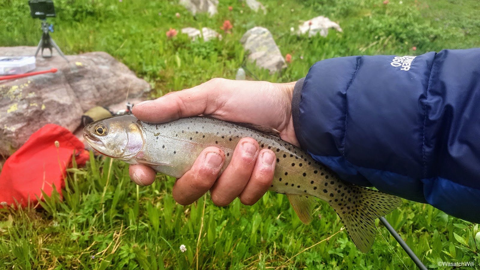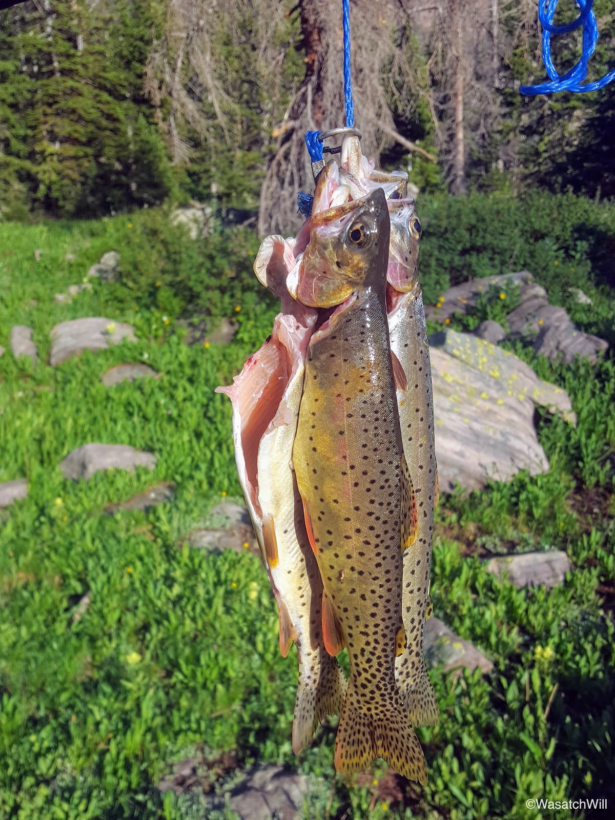 With camp all set up, and a few hours of daylight left, I went down to the lake to do some fishing. Without a whole lot of effort, I was able to pull up a few rainbows of various sizes.