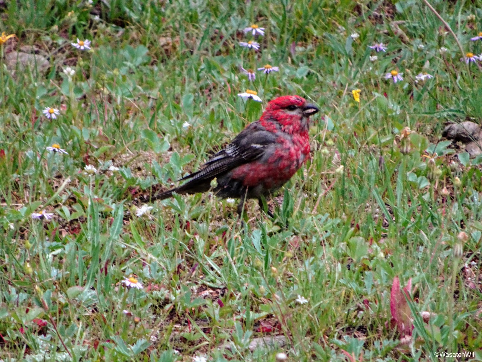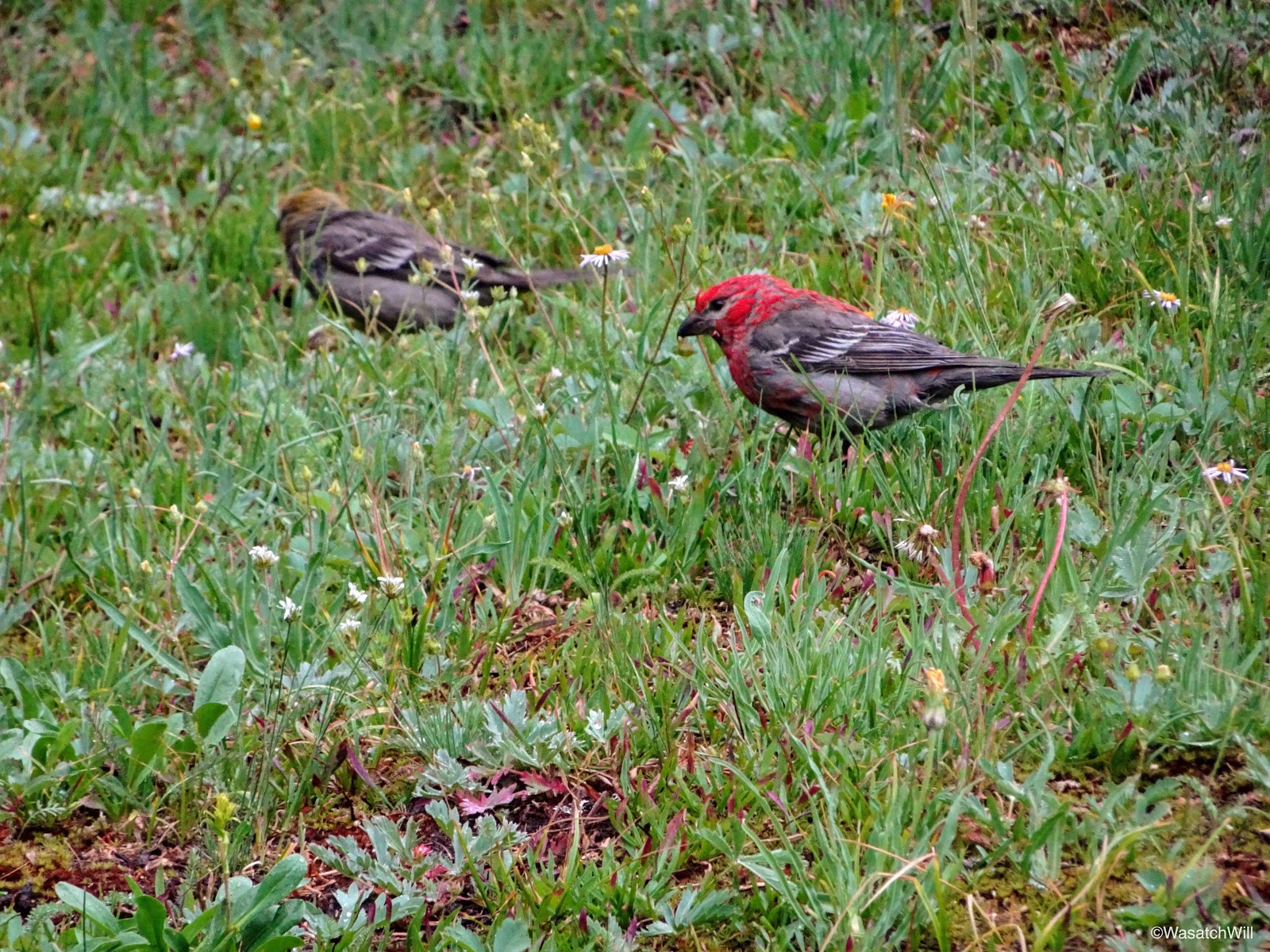 We noticed some colorful birds not far from us feasting on the aftermath of the storm. Jackson's best guess was that they were Pine Grosbeaks and I think he was right.