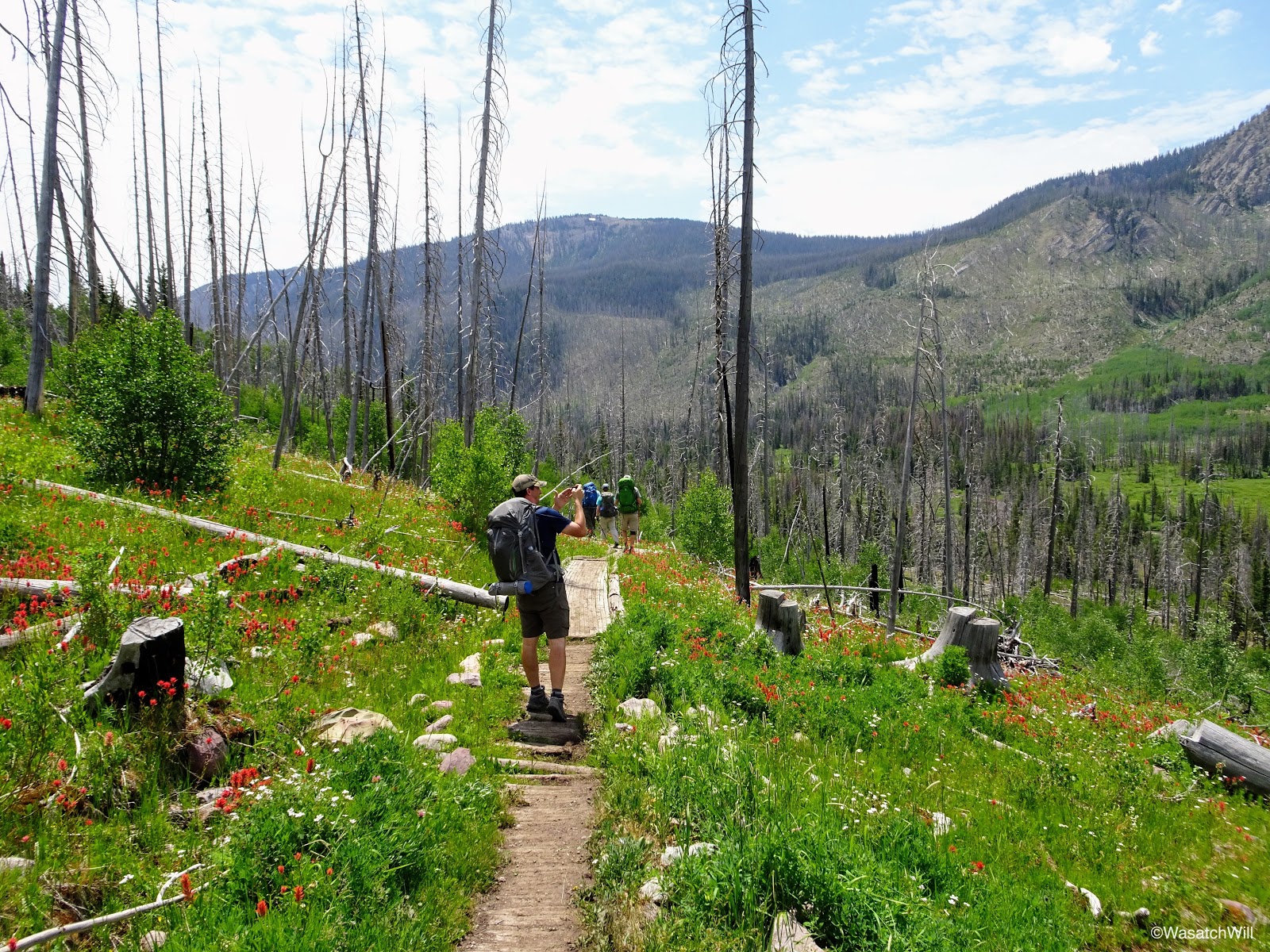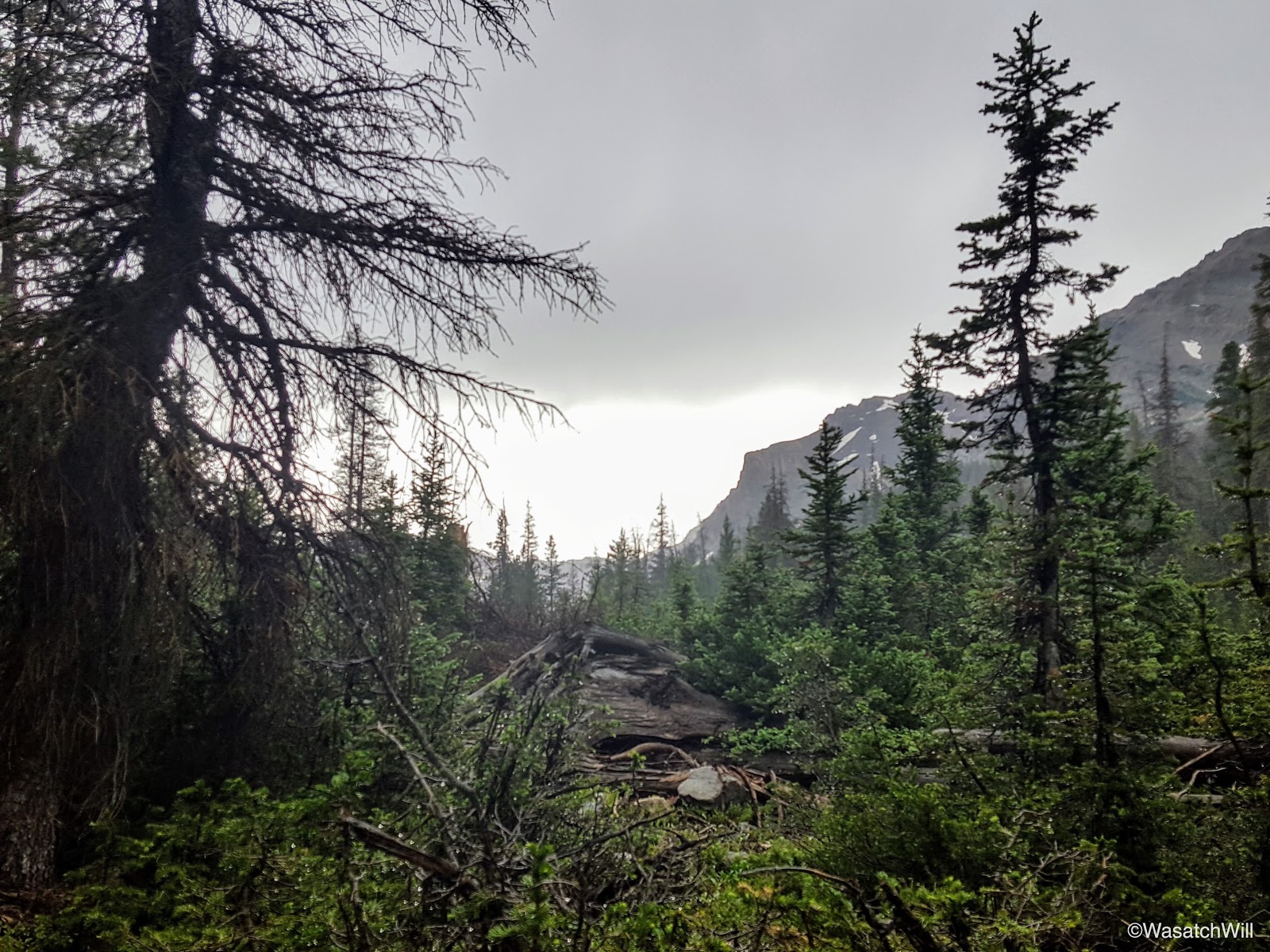 Within about 4 miles, we would be hiking under the cover of trees for long stretches over the next couple miles. Through this section we saw some more wildflowers and stopped for quick rests at the Wilderness marker and the junction with the fork up to Priord Lake. Through this section, we'd also be enveloped with a good bit of rain, hail, thunder, and lightning that would linger around for a good hour or two. In the 'shelter' of so many trees, we hiked on through.