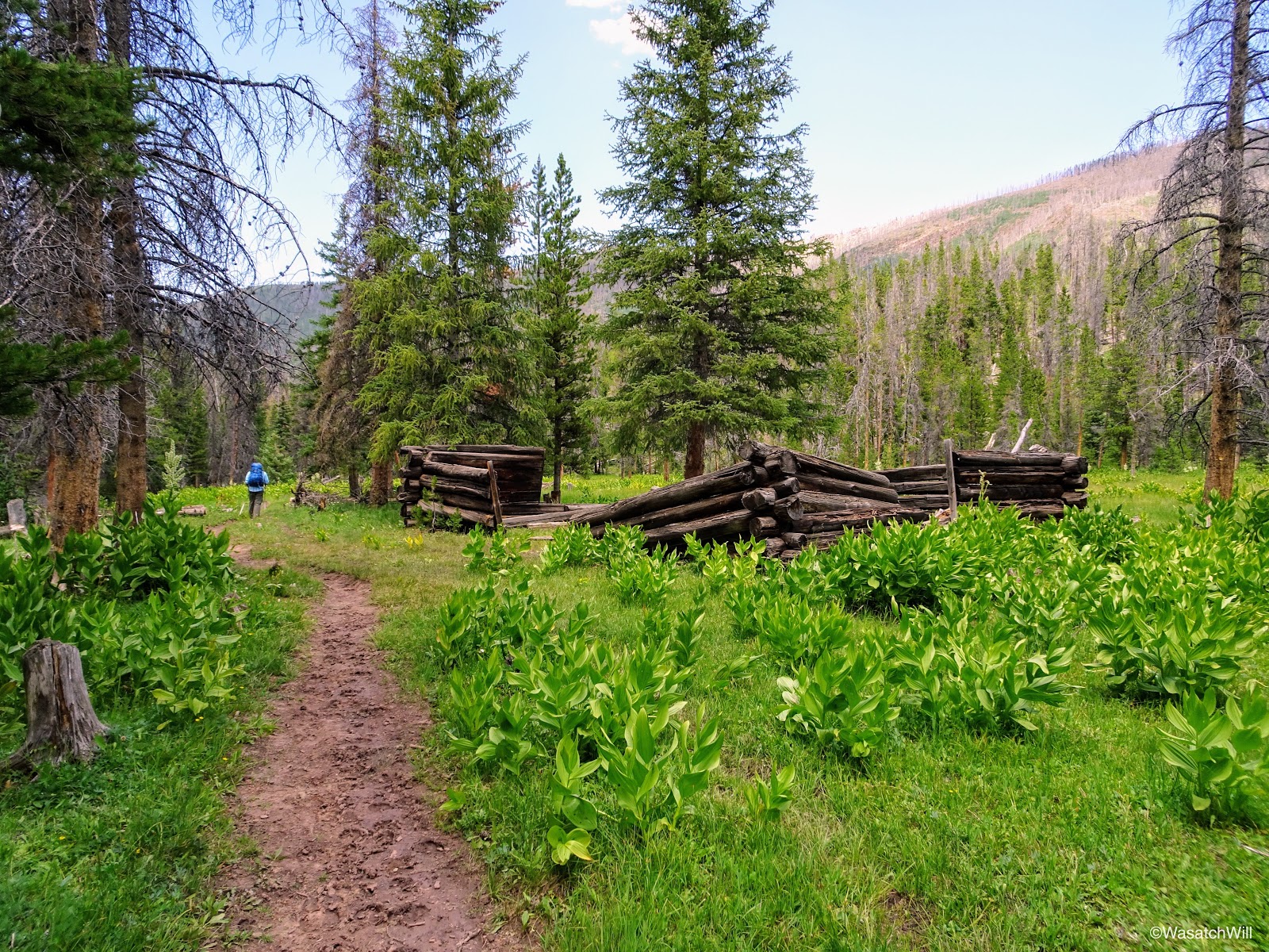 A couple miles up the trail, we passed by what is believed to be an old tie-hacker cabin. Tie-hackers were people who harvested timber to be used for railroad ties in the construction of the transcontinental railroad.