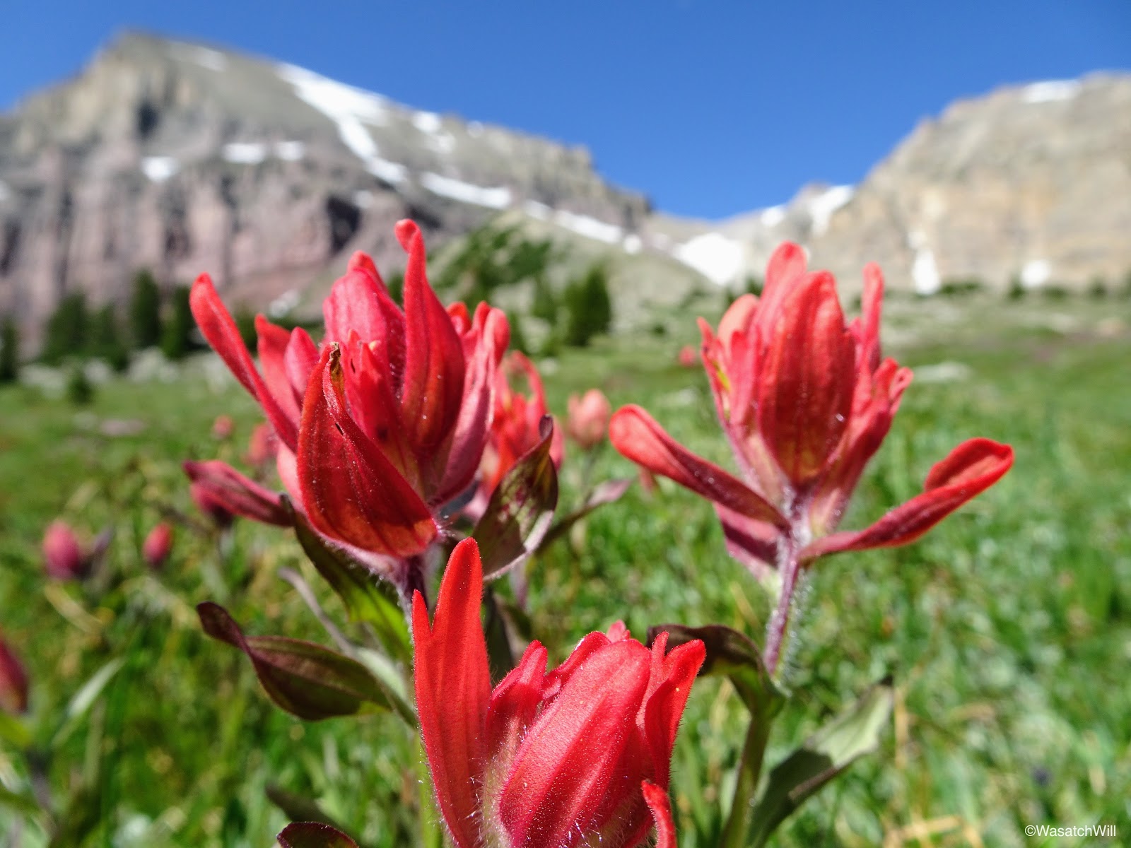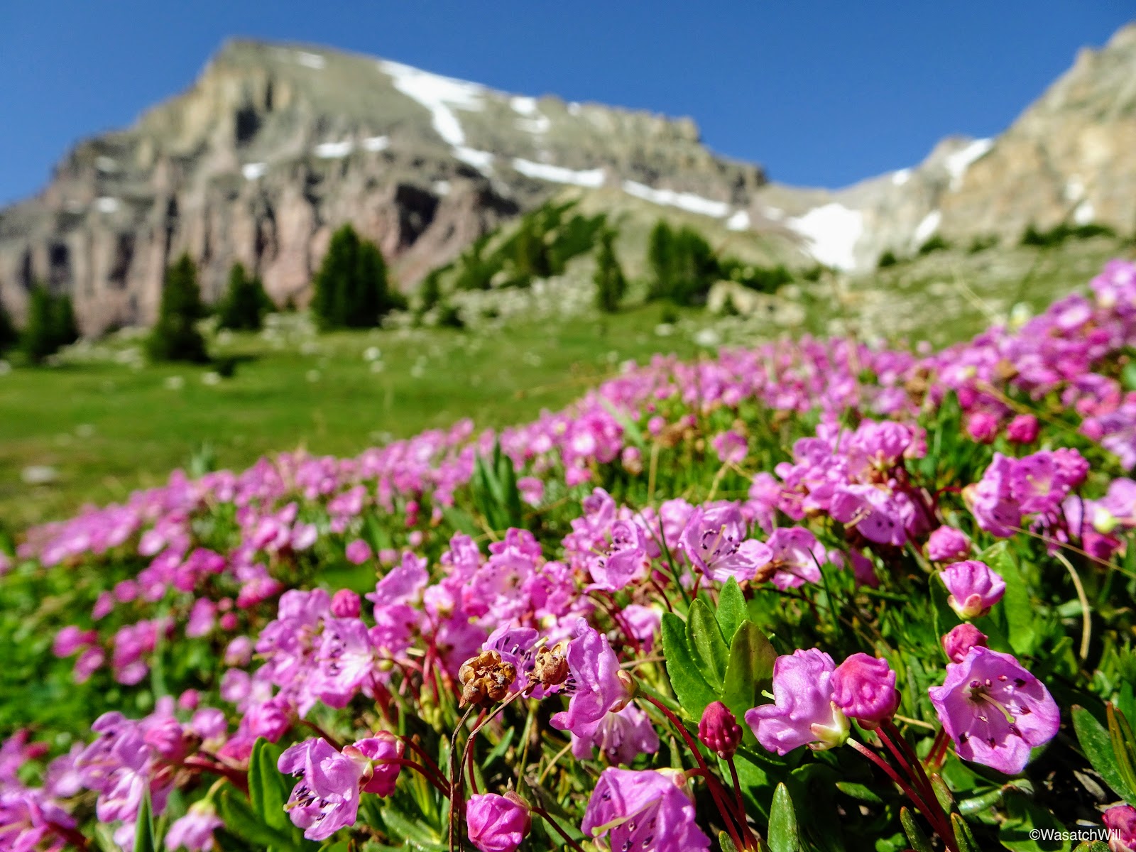 However, instead of keeping with the rest of the group to hike out, somehow I was able to convince Blake to lead me up to a spot he had stumbled into on his way up to the ridge we had hiked up the previous morning to check out a patch of pink flowers he had gotten some great pictures of. We chose to leave our packs back down at camp and retrieve them after. I'm not sure what type of flowers they were, but they were very, very small. I'm guessing they are a type of saxifrage. Apparently saxifrage does exist high up in the Uintas and but it's a rare flower up there.