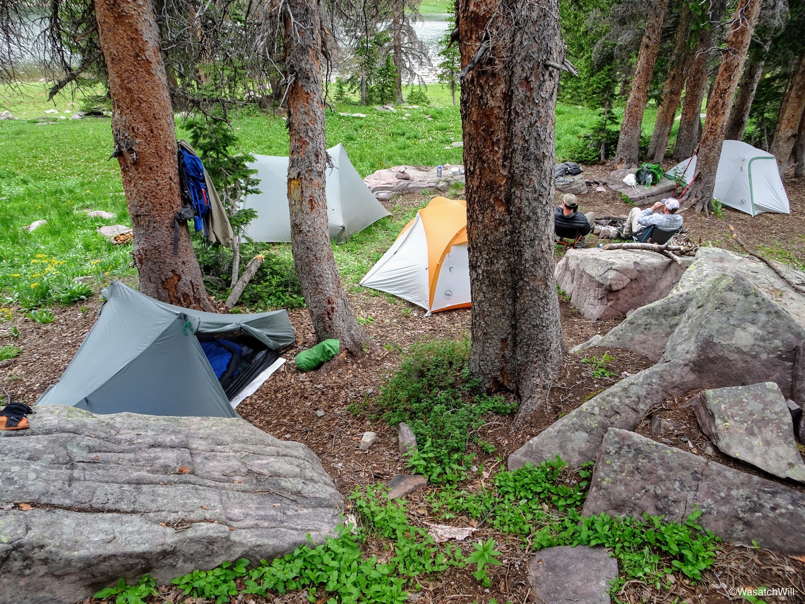 For a meetup with friends, mostly inspired by Adam from last year's Highline Trail trip, we opted for a more casual trip up into the Uintas this year. We chose Allsop Lake, a place neither of us had been yet. Given how the trail conditions turned out, it would have been just as fitting had it been named "All Slop" Lake because the trail was mostly mud or marsh the whole way up. I reached out and invited a few others along to join us as well. As it turned out, we ended up with a group of five, including a buddy of Adam's who would be backpacking for the first time.