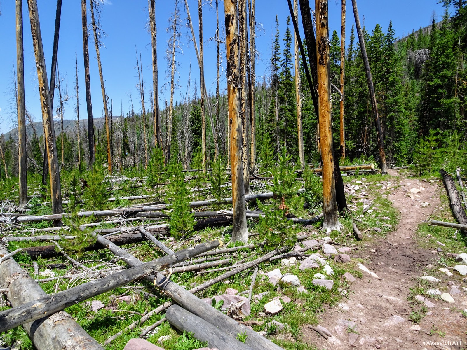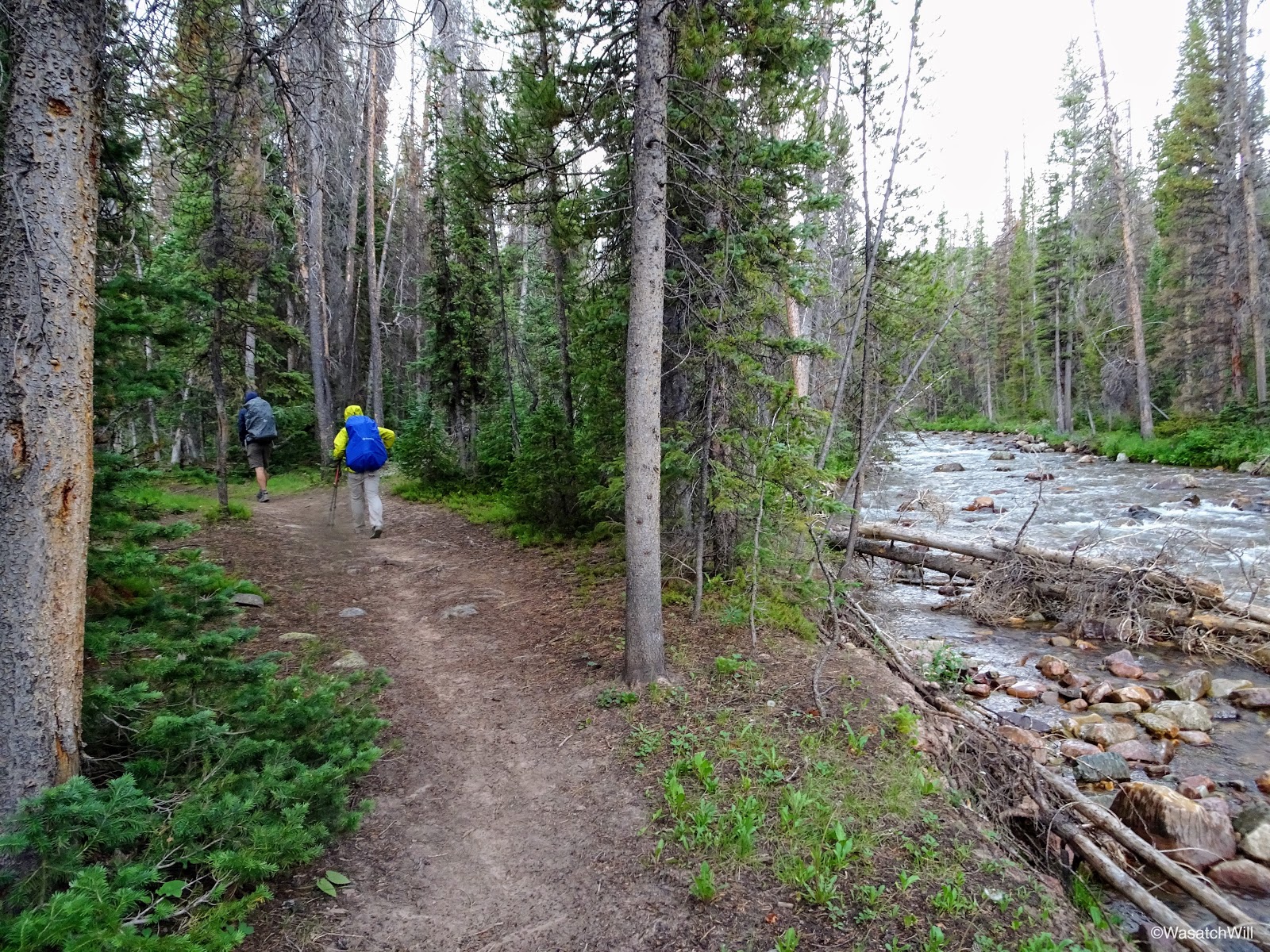 Once on the road, we drove on up to the East Fork Bear River trailhead on the northern slope of the Uintas. At the trailhead we did the ritualistic routine of readying ourselves for the trail and got underway.