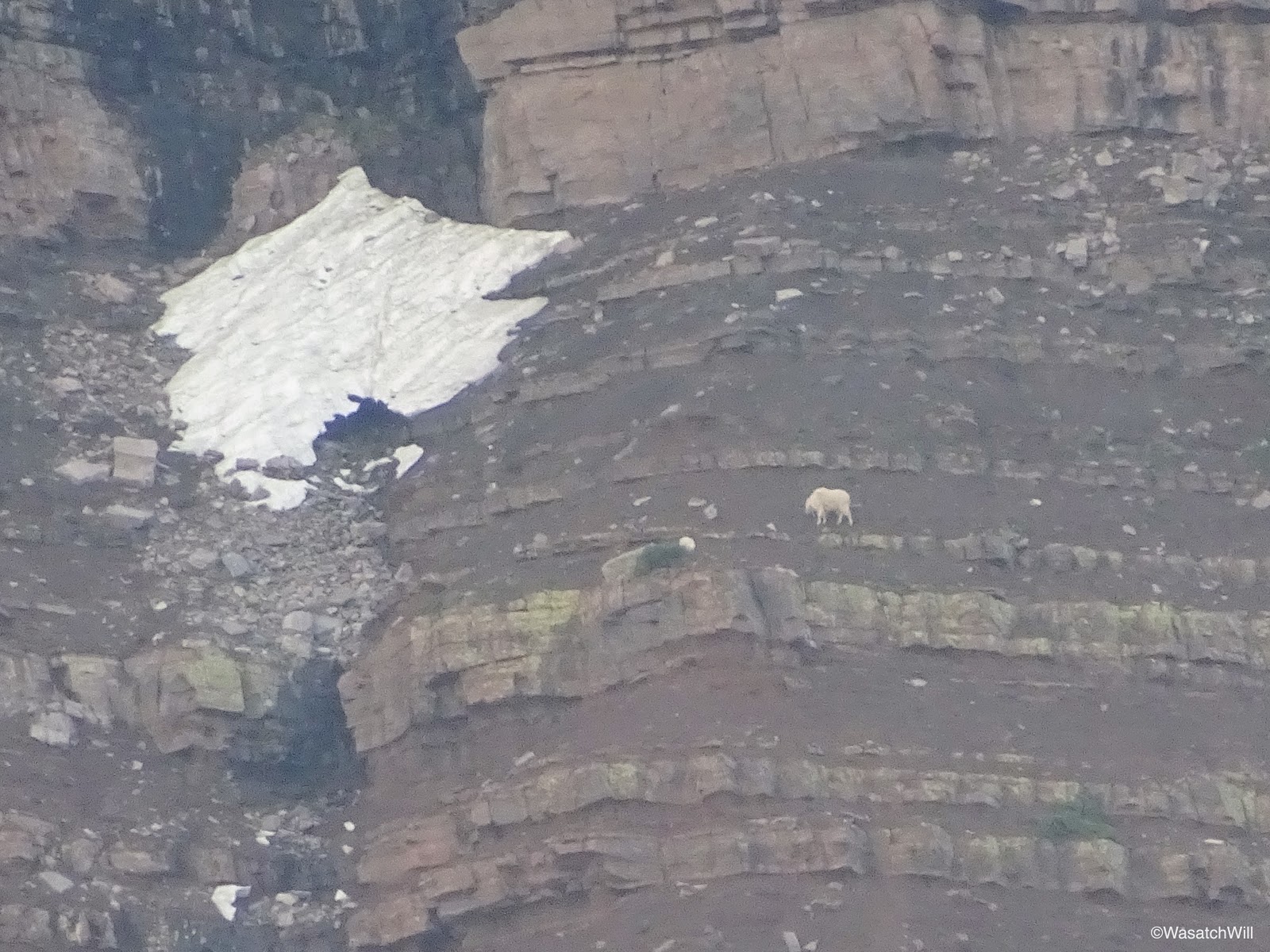 While I had been fishing, I heard some rocks tumbling down the cliff bands up above the basin. I assumed it was some mountain goats, and sure enough, after scanning the cliff bands with my binoculars I found a nanny goat and kid out having some supper of their own.