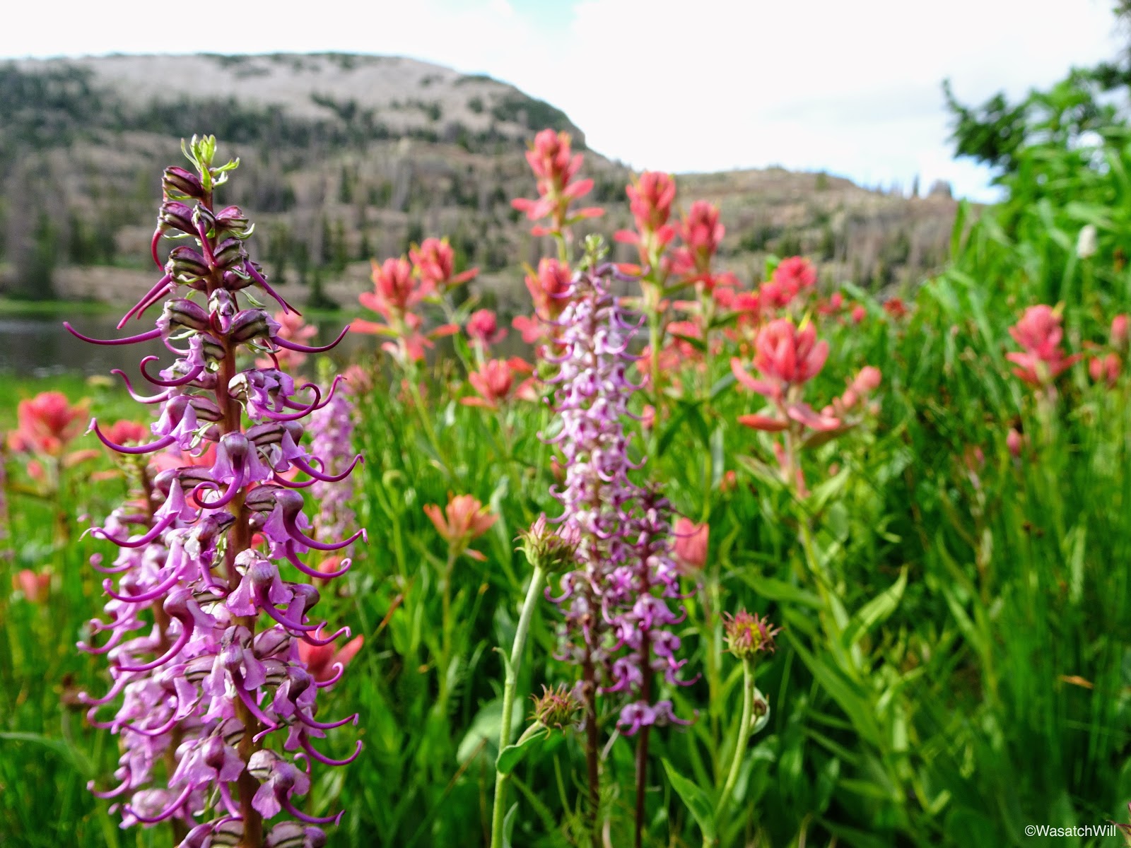 Back down at Clyde Lake, we continued on around it and on toward Twin Lakes. The flowers really took off all around these lakes in the meadows in between.