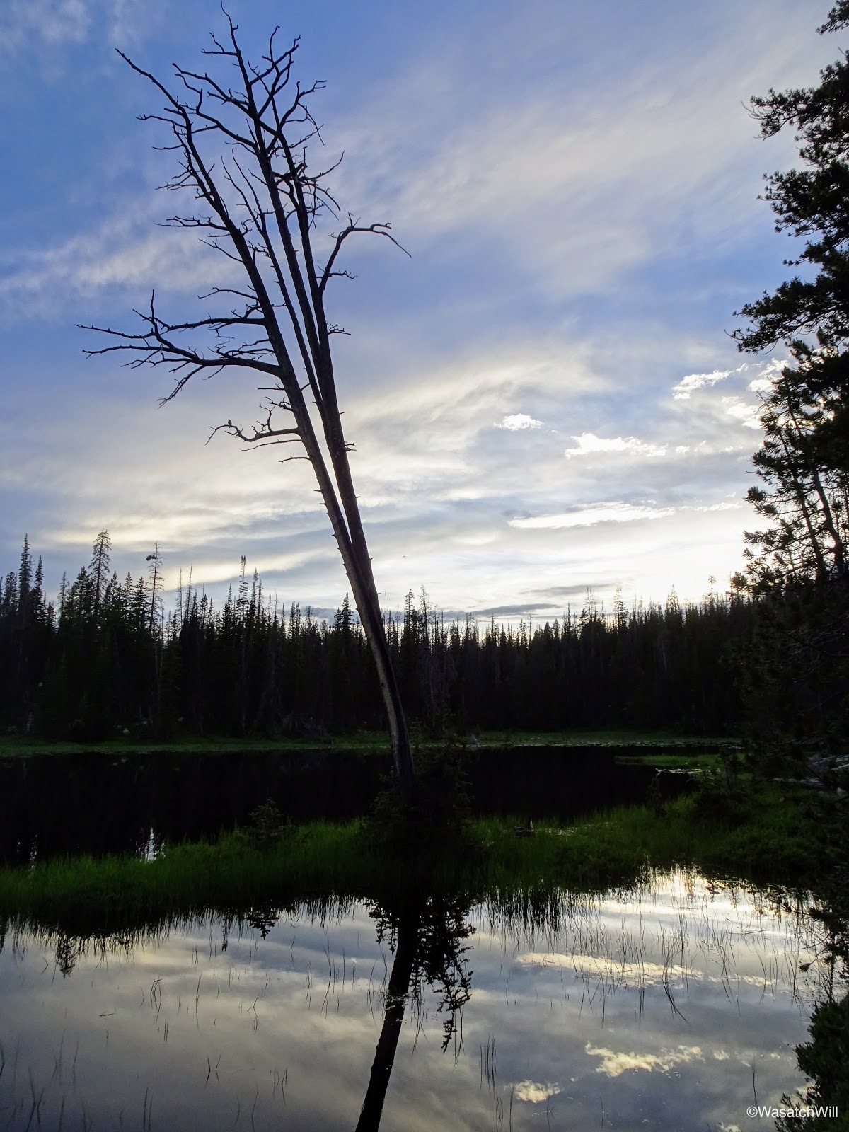 We rounded up my dog Sophie and drove on up the Mirror Lake Highway to the Crystal Lake Trailhead and as expected, found it to be mostly full, but we were fortunate enough to find one of a few spaces available. It was about 5:30 in the evening when we got started. At five miles without any remarkable elevation gain to overcome, it was a hike I knew we could finish well before it got dark, including time to pause for pictures and views. We opted to hike it clockwise and set up for Cliff Lake.