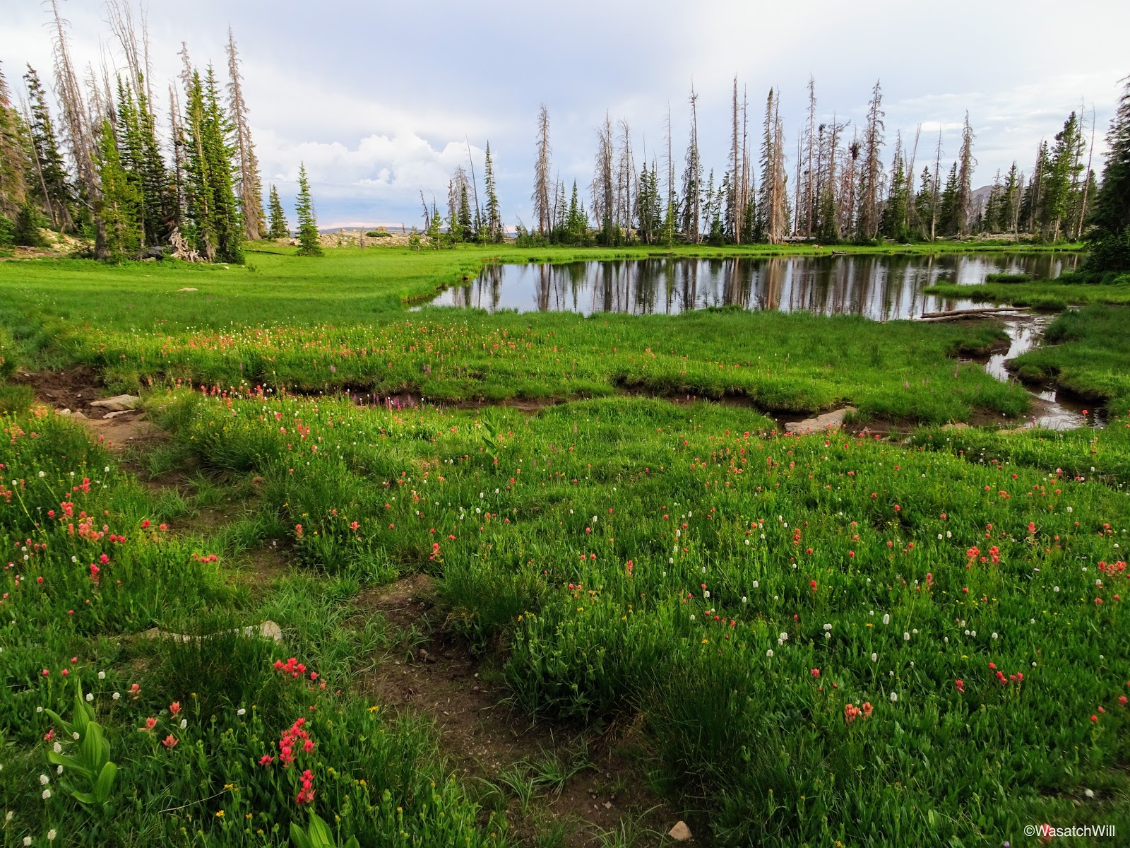 Surprisingly, we didn't encounter very many people the whole way around the loop until we reached Wall Lake. One of the most popular lakes for people to hike, fish, and camp at in the Uintas, it was sprawling with people as usual.