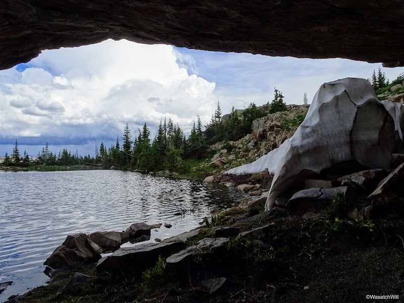 We also discovered a small little cave at the lake's edge that I had not noticed before on prior hikes around this loop.