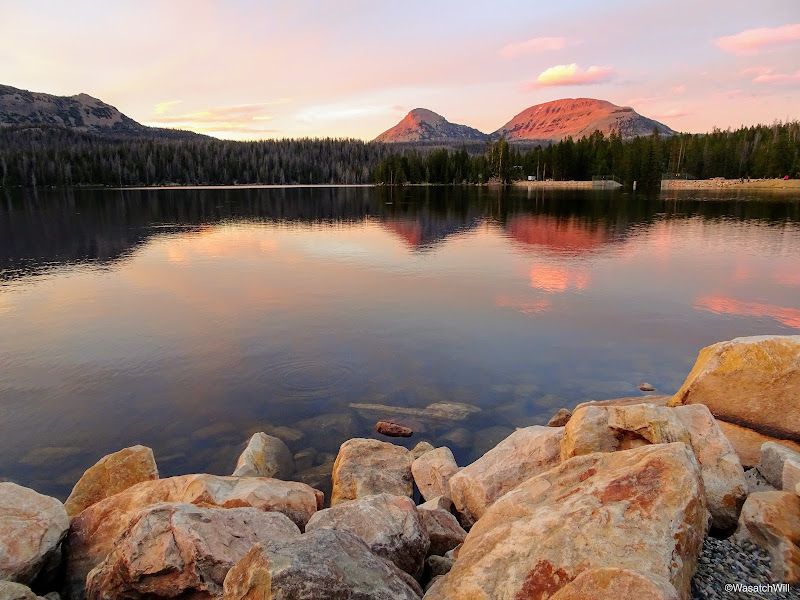 Once back at the car, we drove on out and pulled over beneath Trial Lake dam. Seeing the sky starting to change colors and I wanted to see what it looked like over Trial Lake.