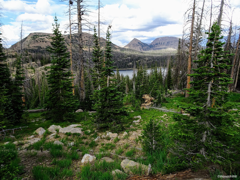 Reids Peak and Bald Mountain from trail below Wall Lake