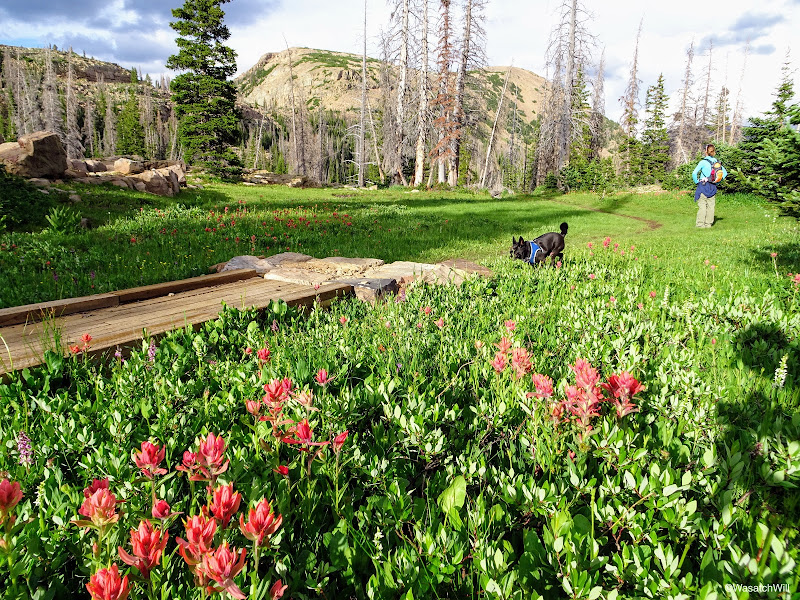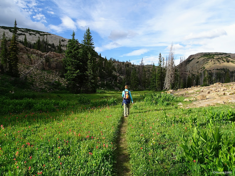 Surprisingly, we didn't encounter very many people the whole way around the loop until we reached Wall Lake. One of the most popular lakes for people to hike, fish, and camp at in the Uintas, it was sprawling with people as usual.