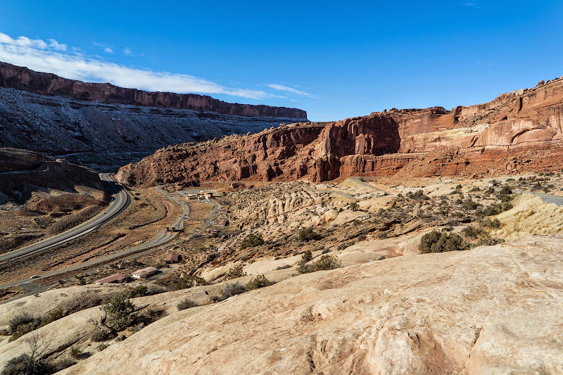 On the 28th I headed down to Arches for the day with my sister and her boyfriend, who have never been to Arches. We had left at 8 and got to the park at 10:30. Next time I hope to leave earlier. We stopped in the visitor center and had a look around. It is really nice inside and worth a quick look. First stop was at the Moab Fault. This had a nice view over the visitor center.