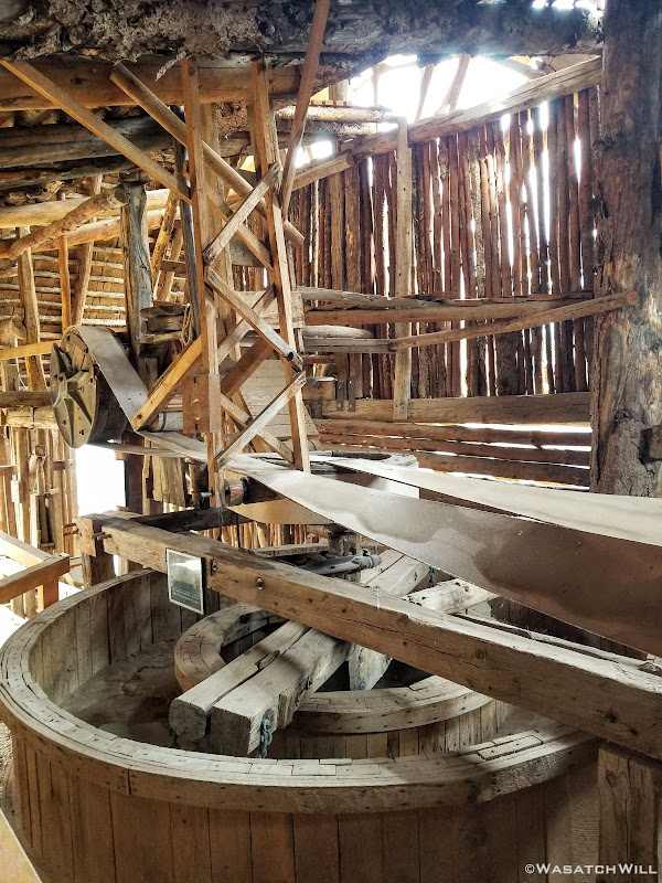 We continued on down the highway until we arrived in Hanksville and ended up pulling up at the diner there for lunch. While there, I saw a post on Instagram by @Udink of a gravestone for a guy name Edwin Thatcher Wolverton. I looked up at the wall above the table we were eating and coincidentally saw an image hanging there of an old historic gold mill erected by the same that had been reconstructed out at the BLM office there in Hanksville, after being brought down from its original site in the neighboring Henry Mountains. So...we made a quick trip over there to check it out after lunch and learn all about E. T. Wolverton, a prospector who had migrated out west here, having learned of legends of lost Spanish gold mines, and had high hopes of prospering from such a mine himself.