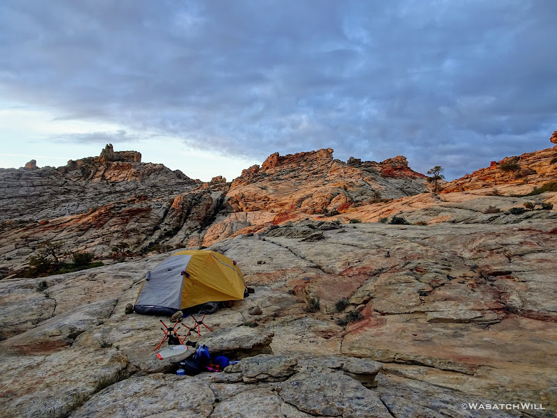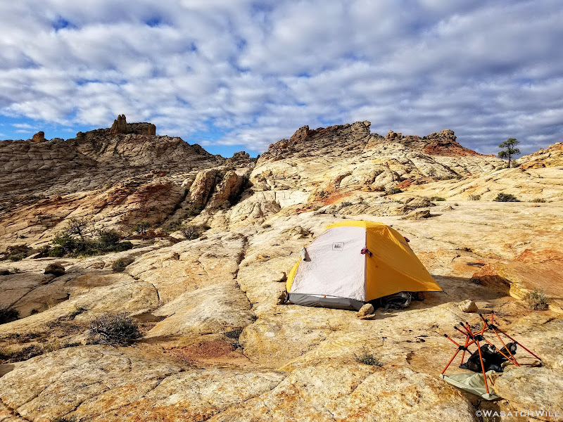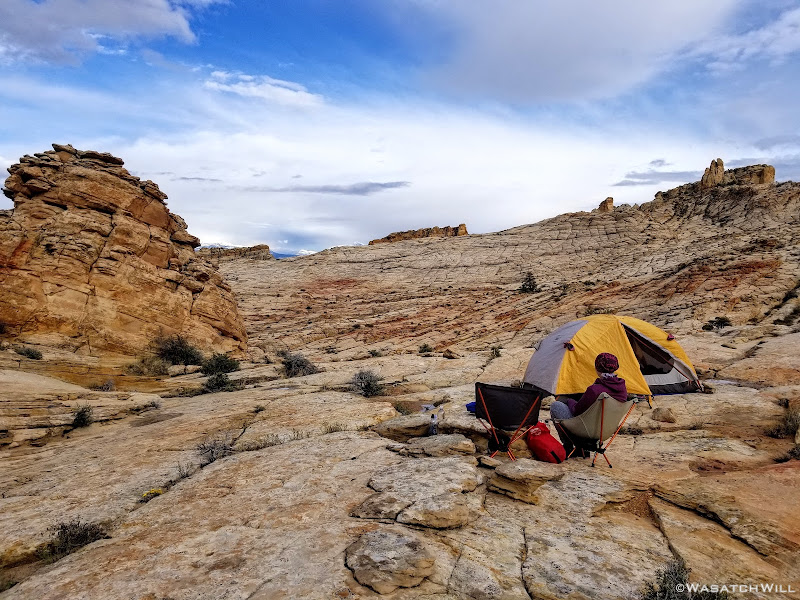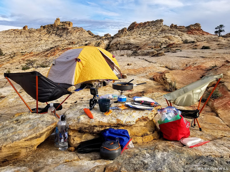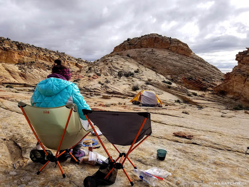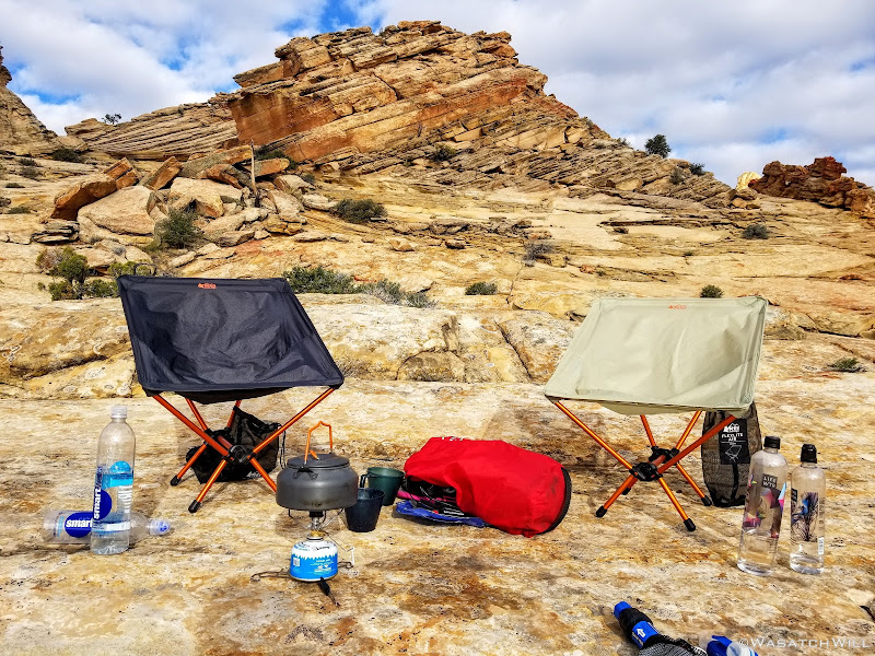 We eventually settled on the same spot Devin and I set up camp last fall along our trip through here. Jess and I brought some new chairs from REI, called the Flexlite Air. Weighing a hair under a pound each, it was certainly a luxury worth packing along.