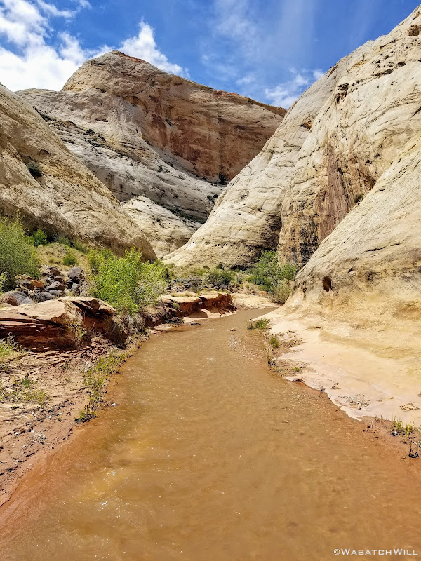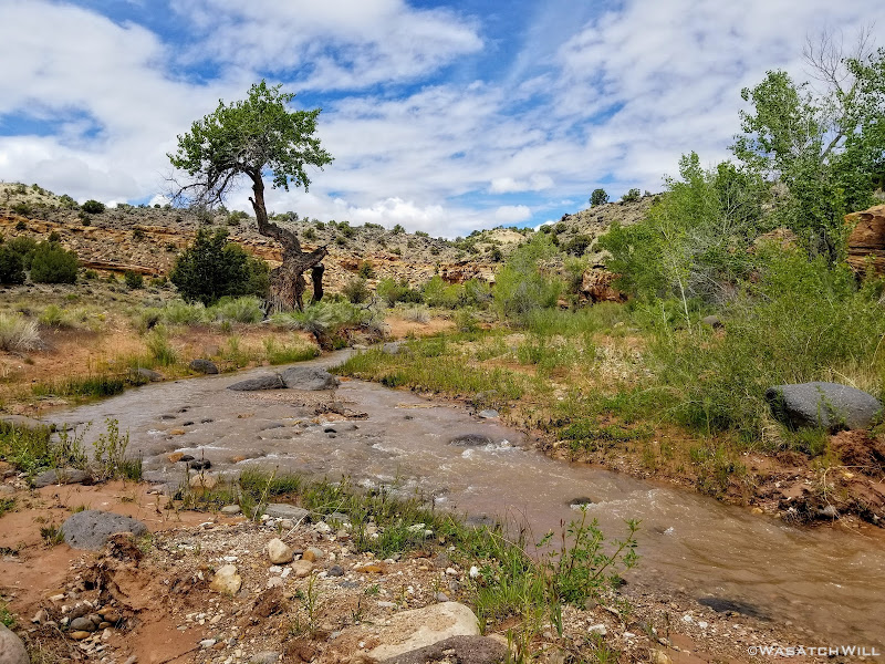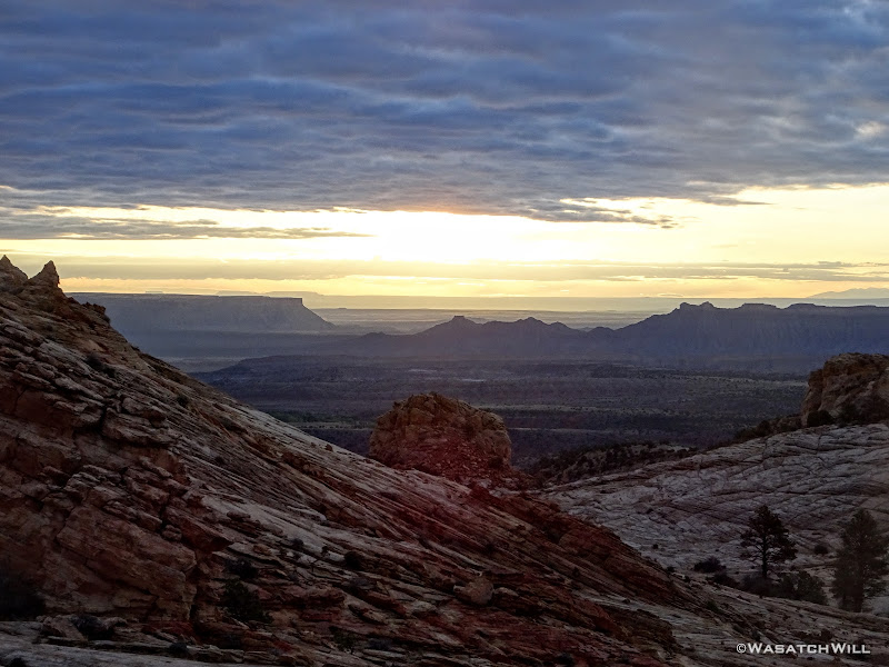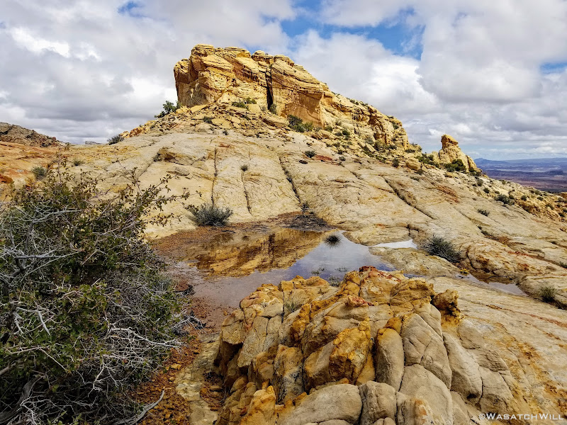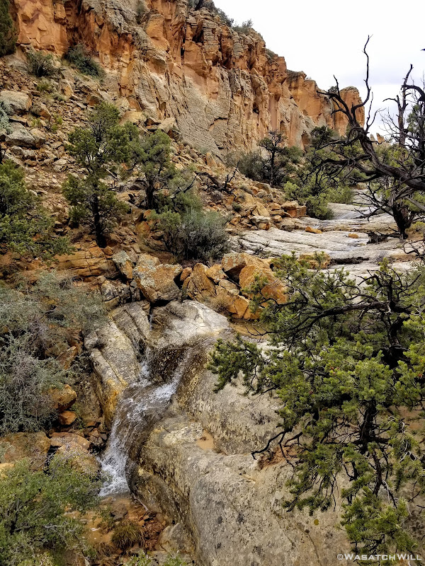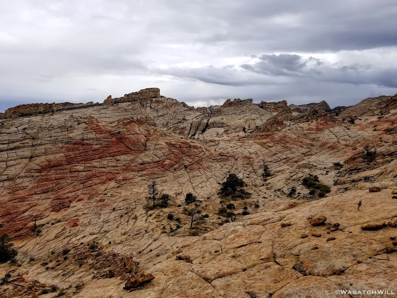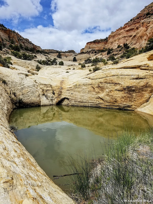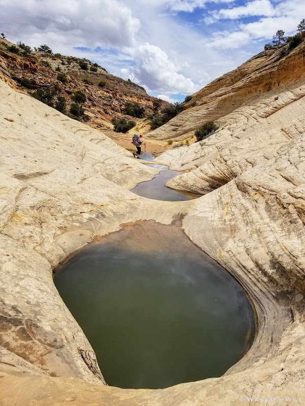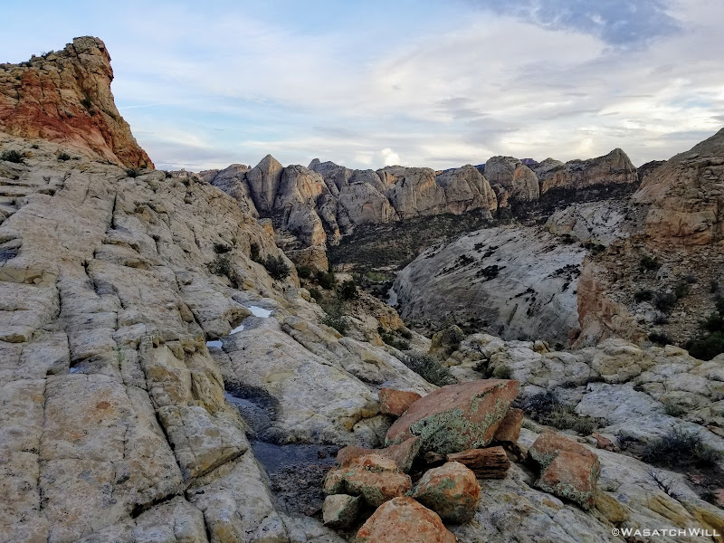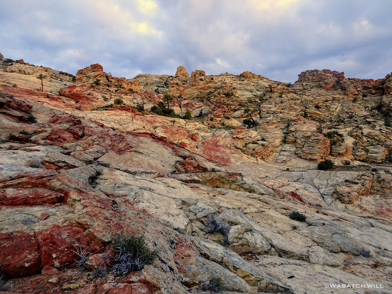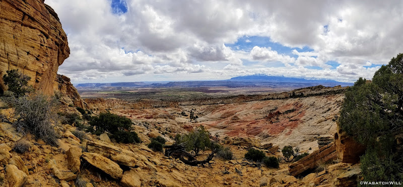 Tuesday came and with it, a forecast for more showers, at least in the afternoon. It wasn't nearly the forecast for what hit the area the day before. In fact, the morning featured a fair bit of sun with the promise of drying things about a bit. Despite more showers forecasted for the afternoon, Jess and I opted to go for it and put in a night up on the mesa top that lies between Capitol Gorge and Pleasant Creek. Because it has no official name, and is part of the Waterpocket Fold that does indeed feature a lot of waterpockets and potholes throughout many of its drainages, I'm hence forward calling "Pleasant Pocket Mesa".