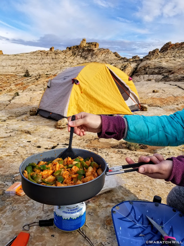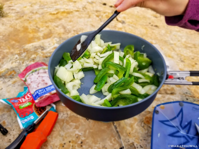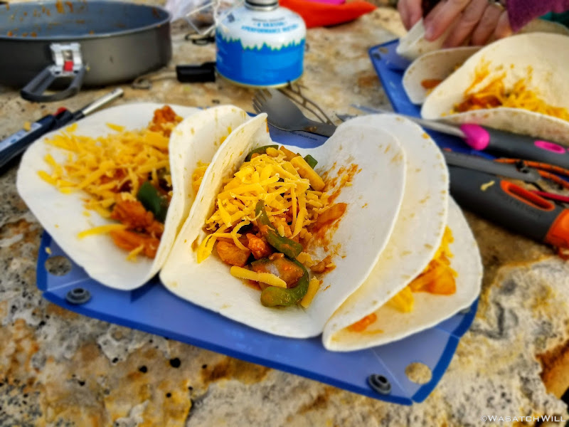 With camp all set up, we got right to work cooking up some backcountry fajitas for dinner.